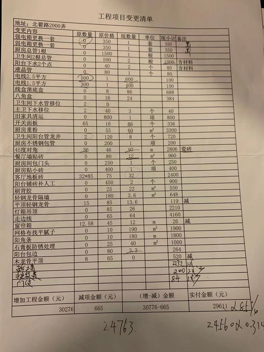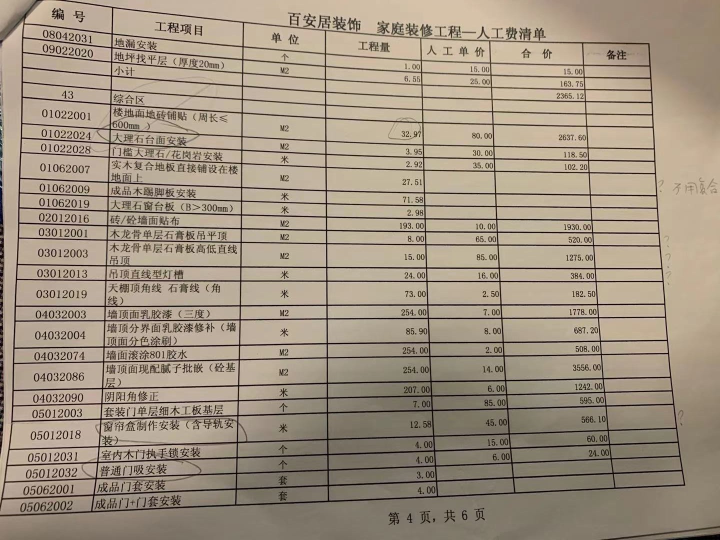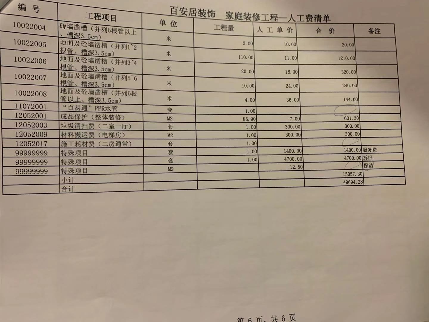 1、存在管理混亂、亂收費(fèi)現(xiàn)象。百安居合同預(yù)算工程人工費(fèi)49694.28元,實(shí)際收費(fèi)50293.98元和增加工程金額30276元,共80569.98元,多出的費(fèi)用僅由工程隊(duì)長出具一頁項(xiàng)目變更清單,經(jīng)比對存在幾個(gè)問題,一是百安居無法提供完整的施工明細(xì)清單,工程隊(duì)長提供的清單中存在一些明顯錯(cuò)誤,看上去就不正規(guī)。二是合同預(yù)算工程人工費(fèi)明顯已包含的項(xiàng)目,和一些未施工的項(xiàng)目在變更清單中未進(jìn)行扣除,因此不能排除存在虛報(bào)、瞞報(bào)現(xiàn)象。三是3月27日已聯(lián)系百安居投訴電話工作人員已接聽受理,明確提出對工程款存疑需要百安居提供明細(xì)清單,至今未得到任何消息?,F(xiàn)在發(fā)票也沒有開。