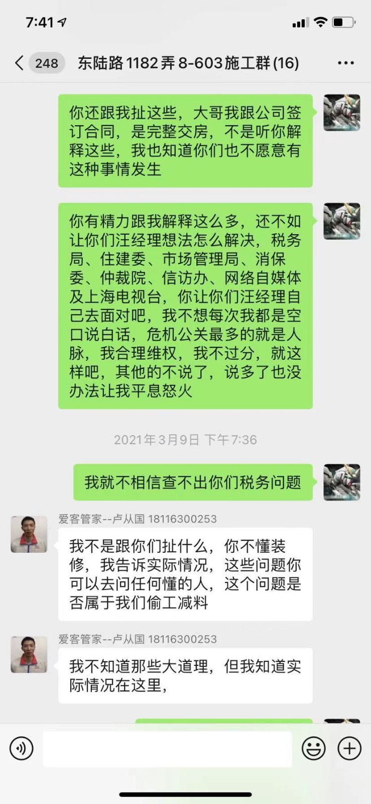 本人同時會向全國性媒體發(fā)布輿情評論及媒體采訪并消保委、市場管理局、上海裝飾協(xié)會、房管局、信訪辦進行投訴舉報維權。