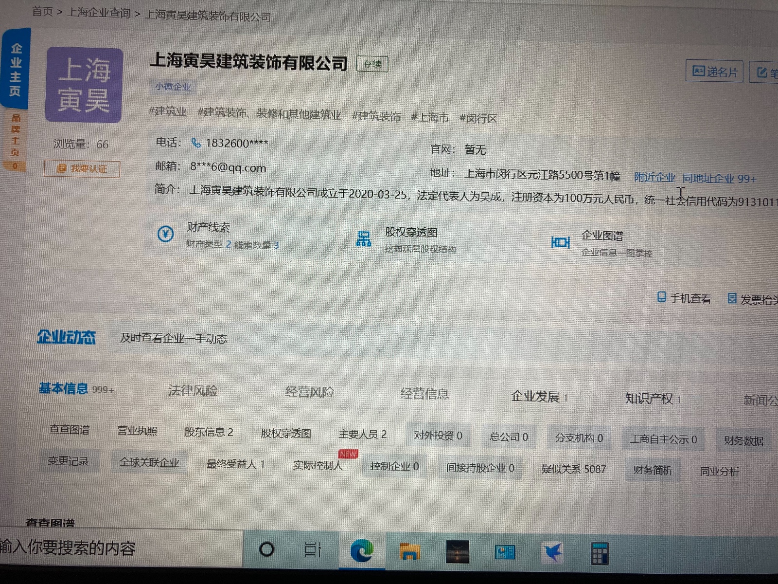水電工:姓名:吳成,其名下有注冊公司上海寅昊建筑裝飾有限公司