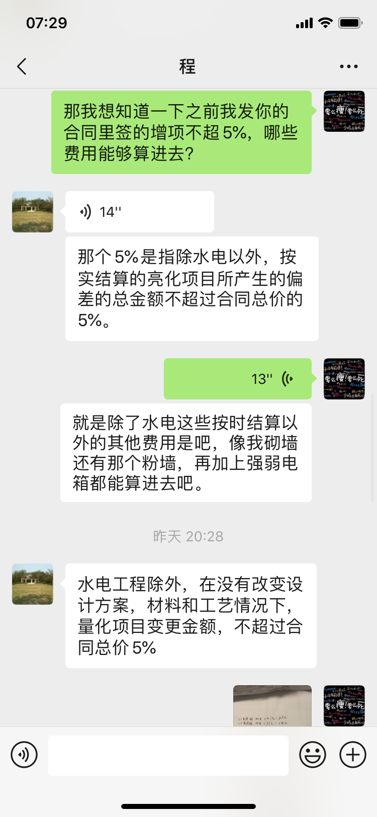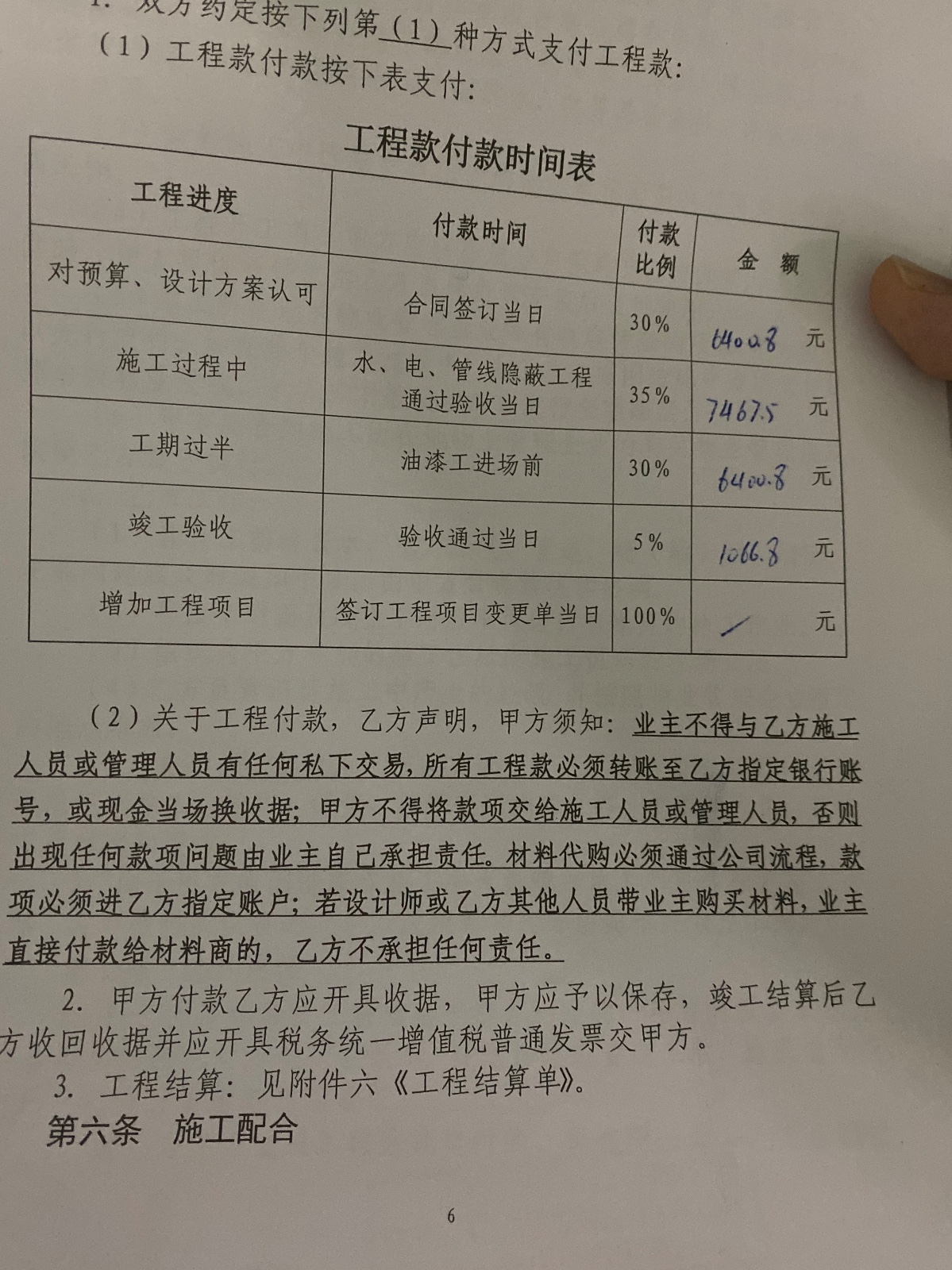 簽合同時,有一個條例為不更改設(shè)計方案的情況下,增項不得超過總價款的5%。一開始簽的合同總價為16.8萬,但是當(dāng)我將主材全部更換后實際價款只有11.4萬。公司當(dāng)時也推脫就按之前的合同執(zhí)行,多余的款項在三期款時扣除,這就影響了我5%的計算。并且公司工程部領(lǐng)導(dǎo)給我的解釋是5%為預(yù)算內(nèi)的增項(不包括水電按實結(jié)算)不超5%,預(yù)算內(nèi)沒有的表示是我自己的主動增項,不得算在其中。按照這個表述,預(yù)算中所有的惡意漏項,都變成了我的主動增項了。