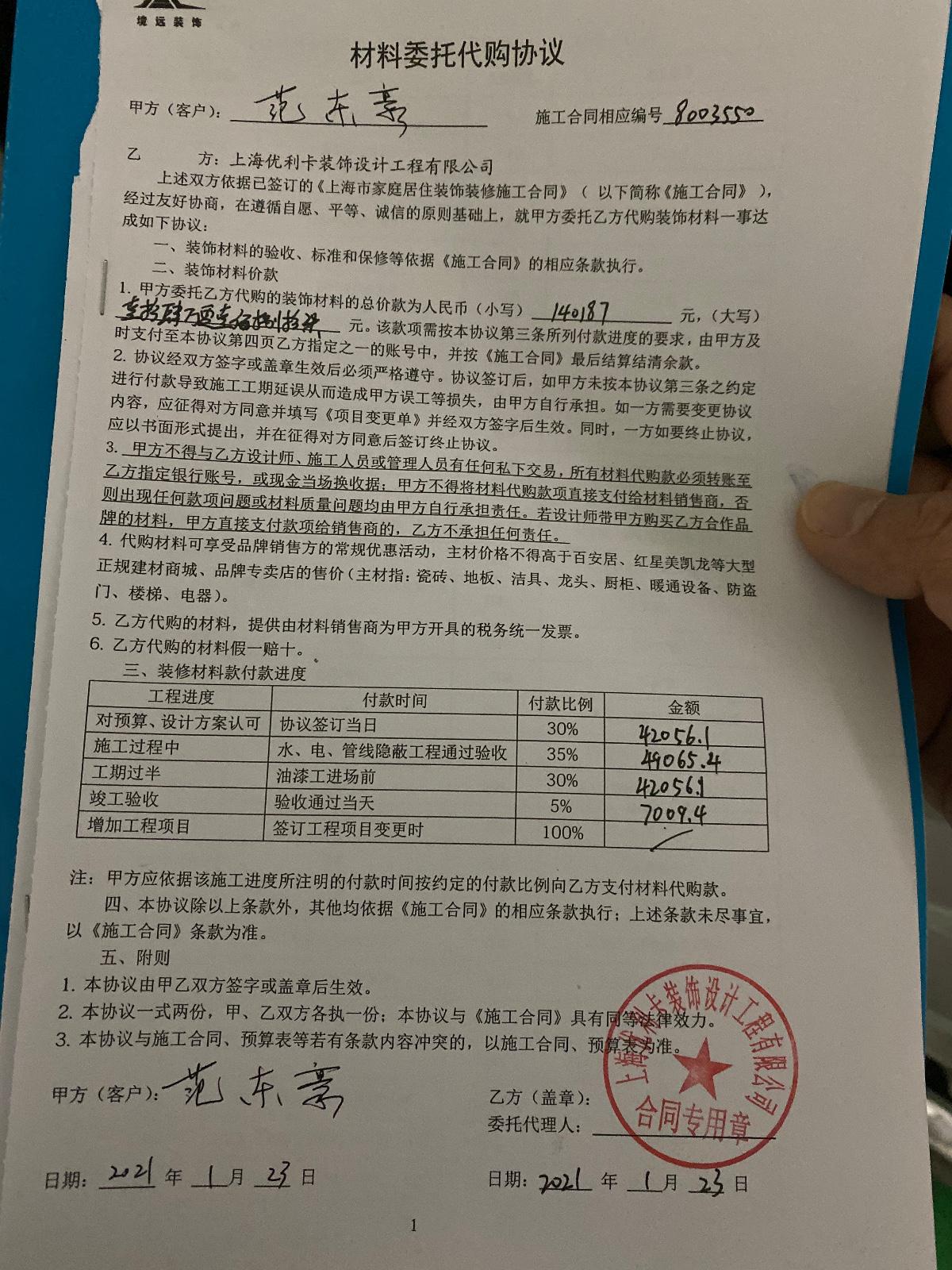 然后就是市場選材,因為一開始是想全包的所以去了他們家的合作商戶進行選材,根據(jù)材料來確定預(yù)算價格。這里就有一個坑,玩了個文字游戲,我當(dāng)時問了如果現(xiàn)在選好的材料不喜歡了能不能再換,當(dāng)時得到的回答是可以的,實際到簽完合同才說除了四大主材意外的其他材料只能換他們合作的商家。