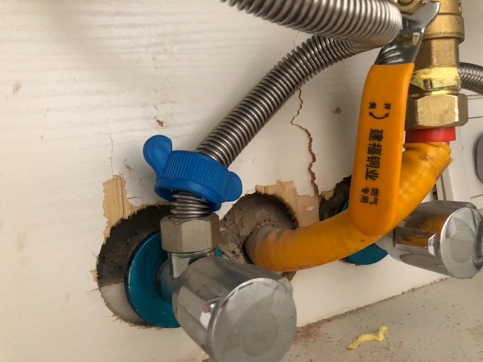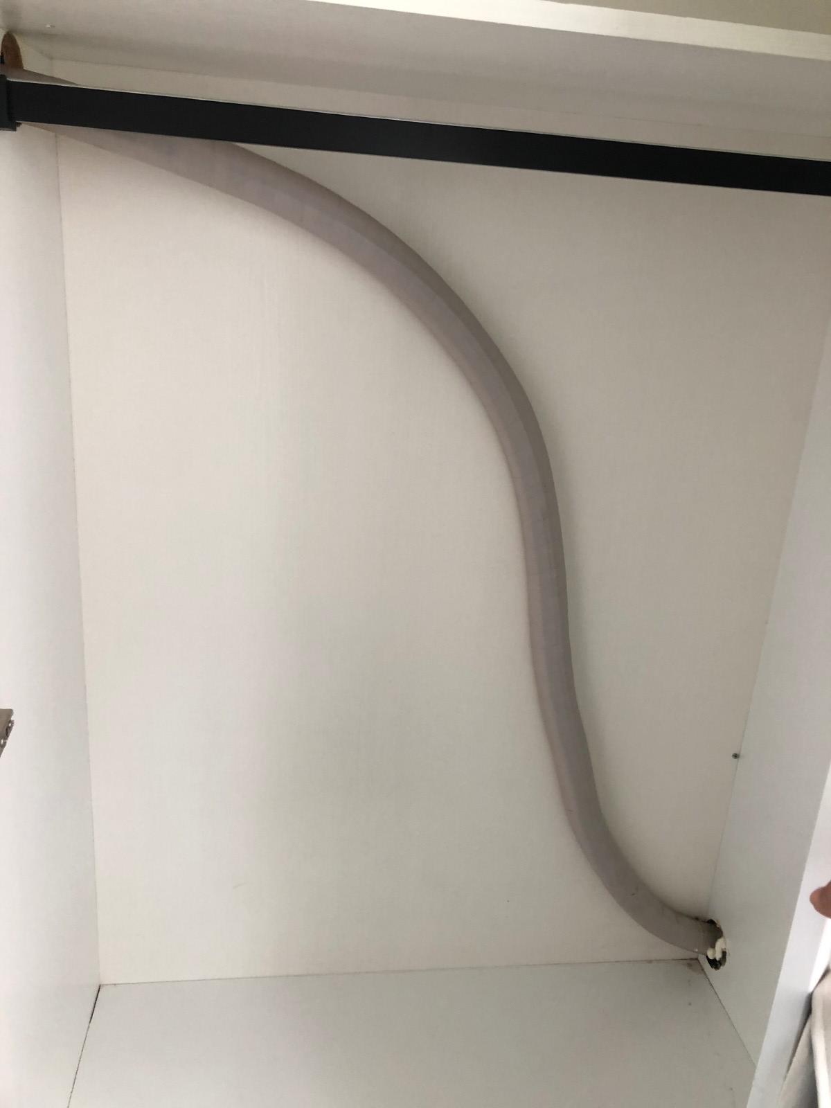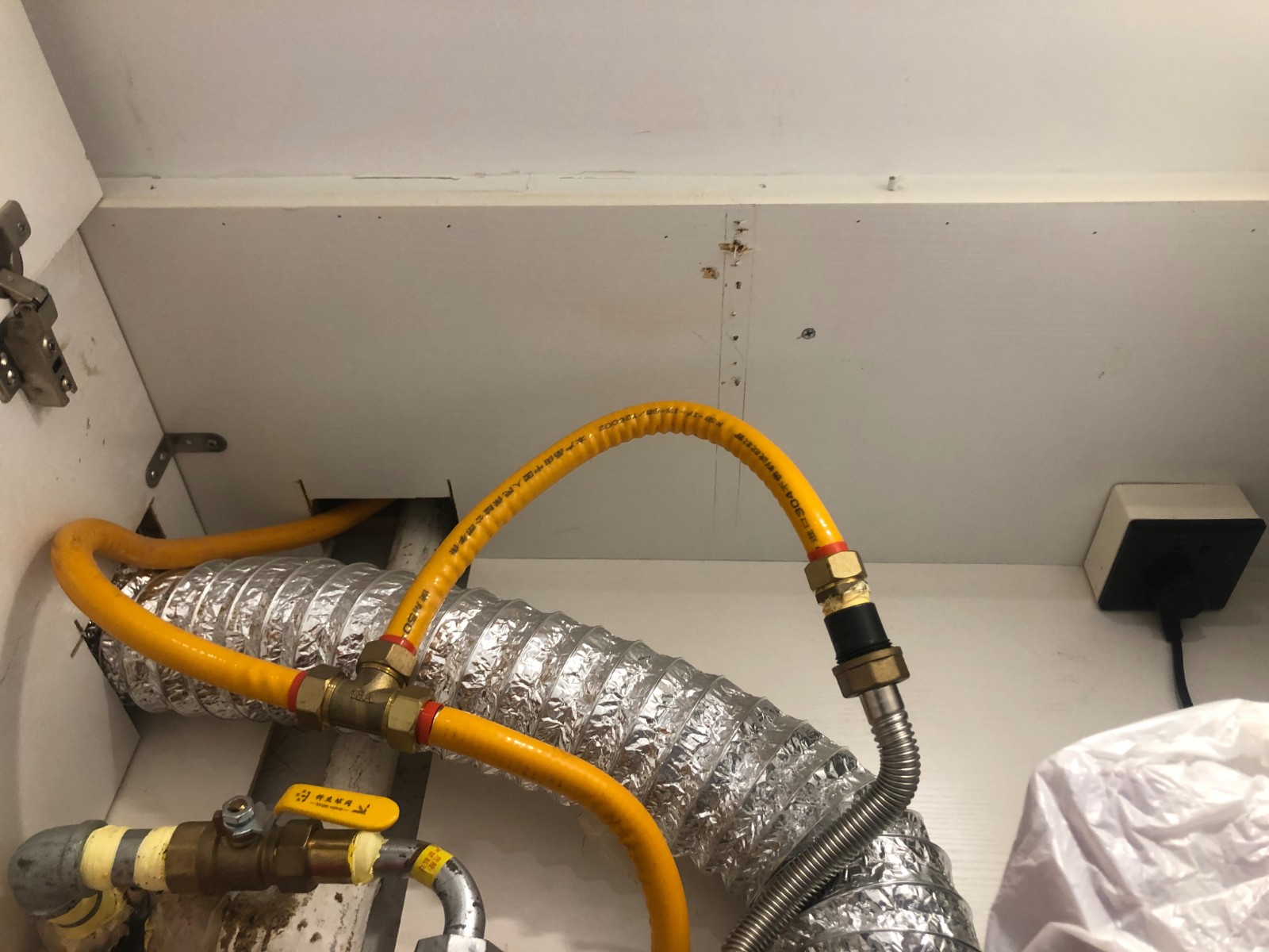 廚房櫥柜內(nèi)部裝修質(zhì)量,煤氣管道鏈接雜亂
