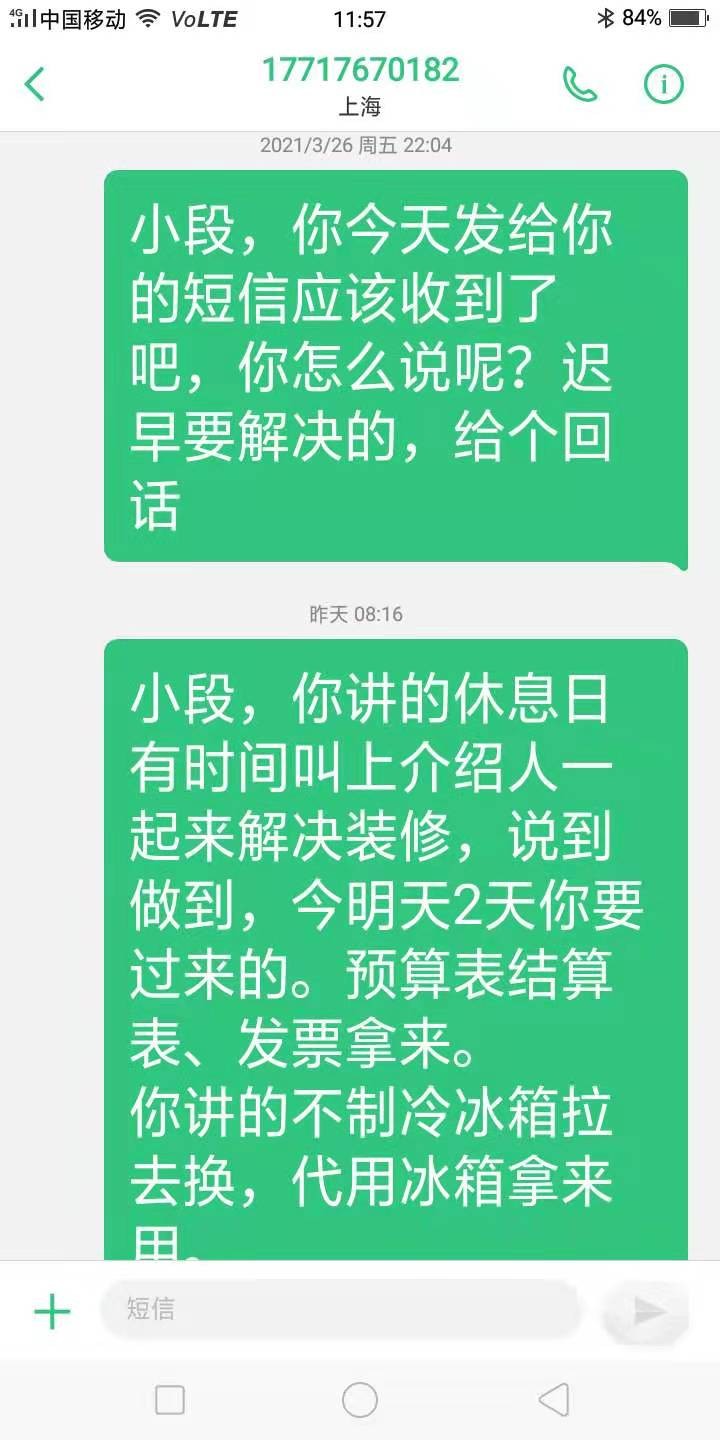 | 裝修面積 | 29m2 | 投訴人手機(jī) | 1370166**** | 被投訴人手機(jī) | 1771767**** |