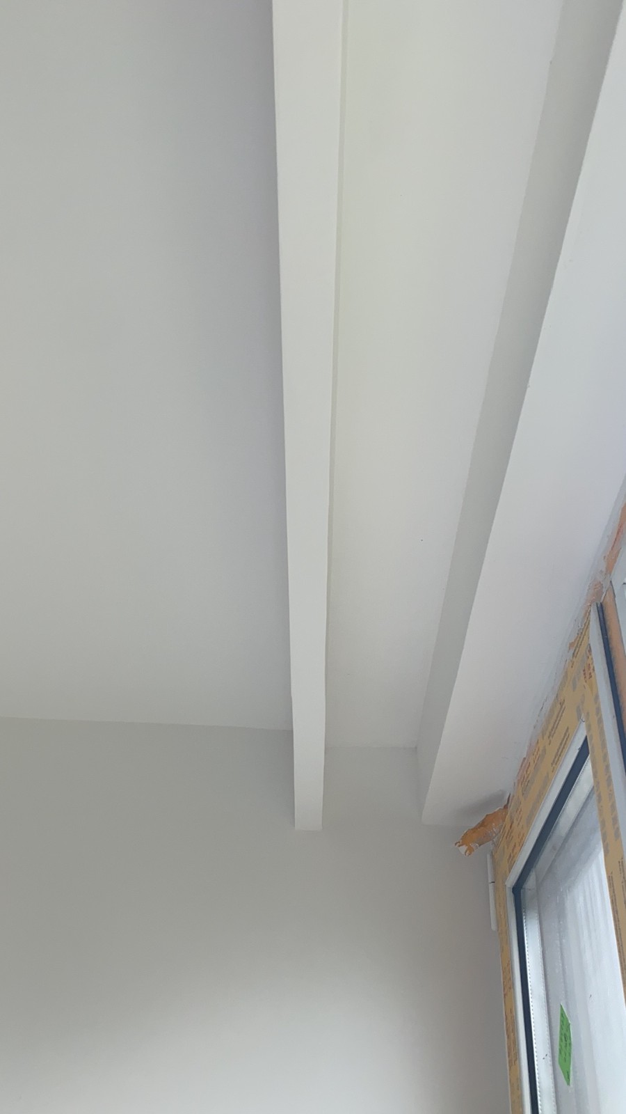 三、窗簾盒制作不齊,應(yīng)該是直線的窗簾盒 做好竟然是歪的,修了一次后竟然還是歪的,而且修完后有明顯維修的痕跡,很丑! 后期還會涉及維修,導(dǎo)致無法做開荒保潔。