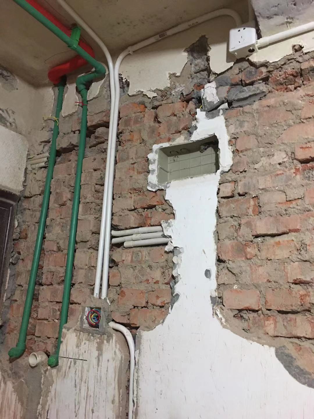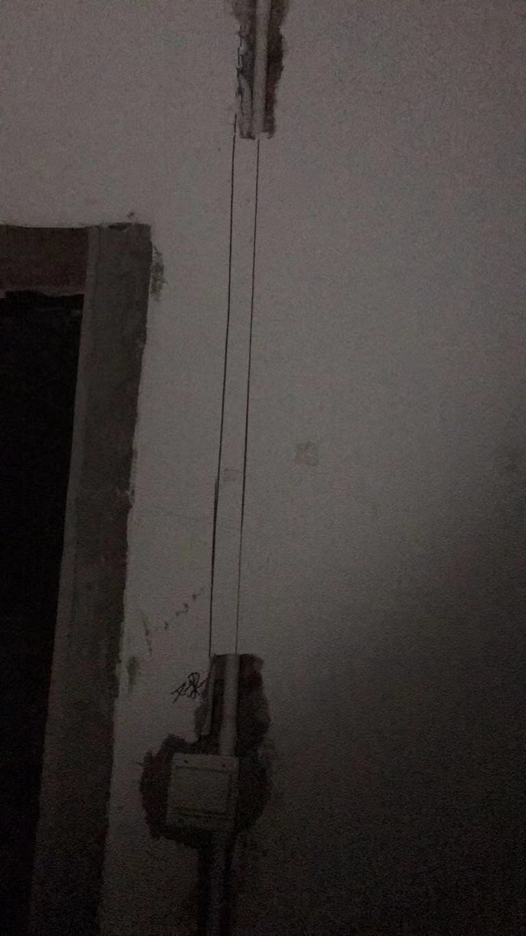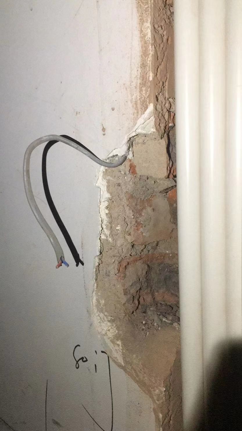 舊的強(qiáng)電箱和電線都沒拆,新安裝的水管都掛在那