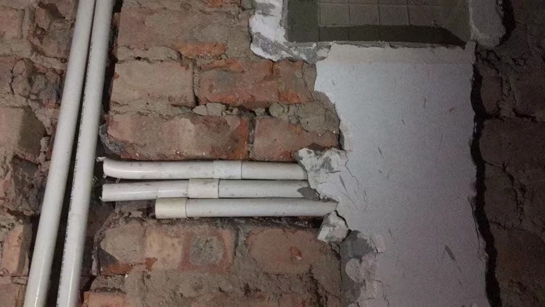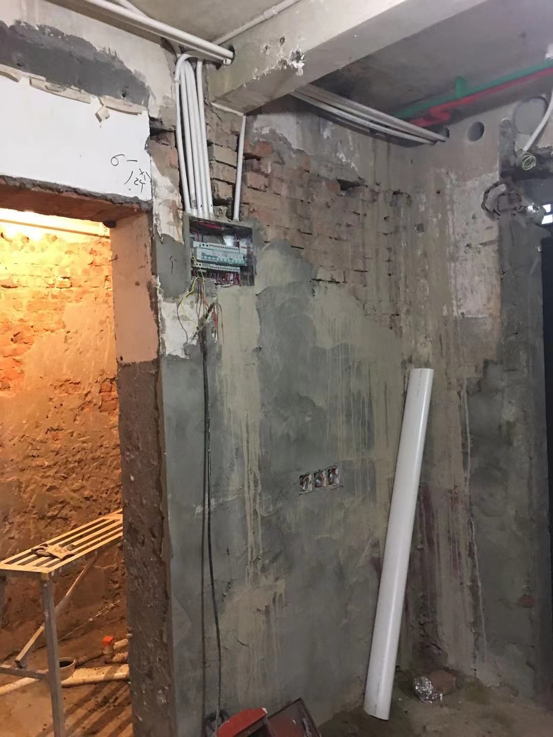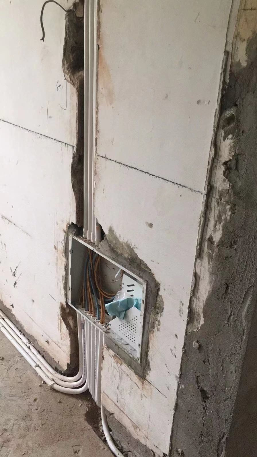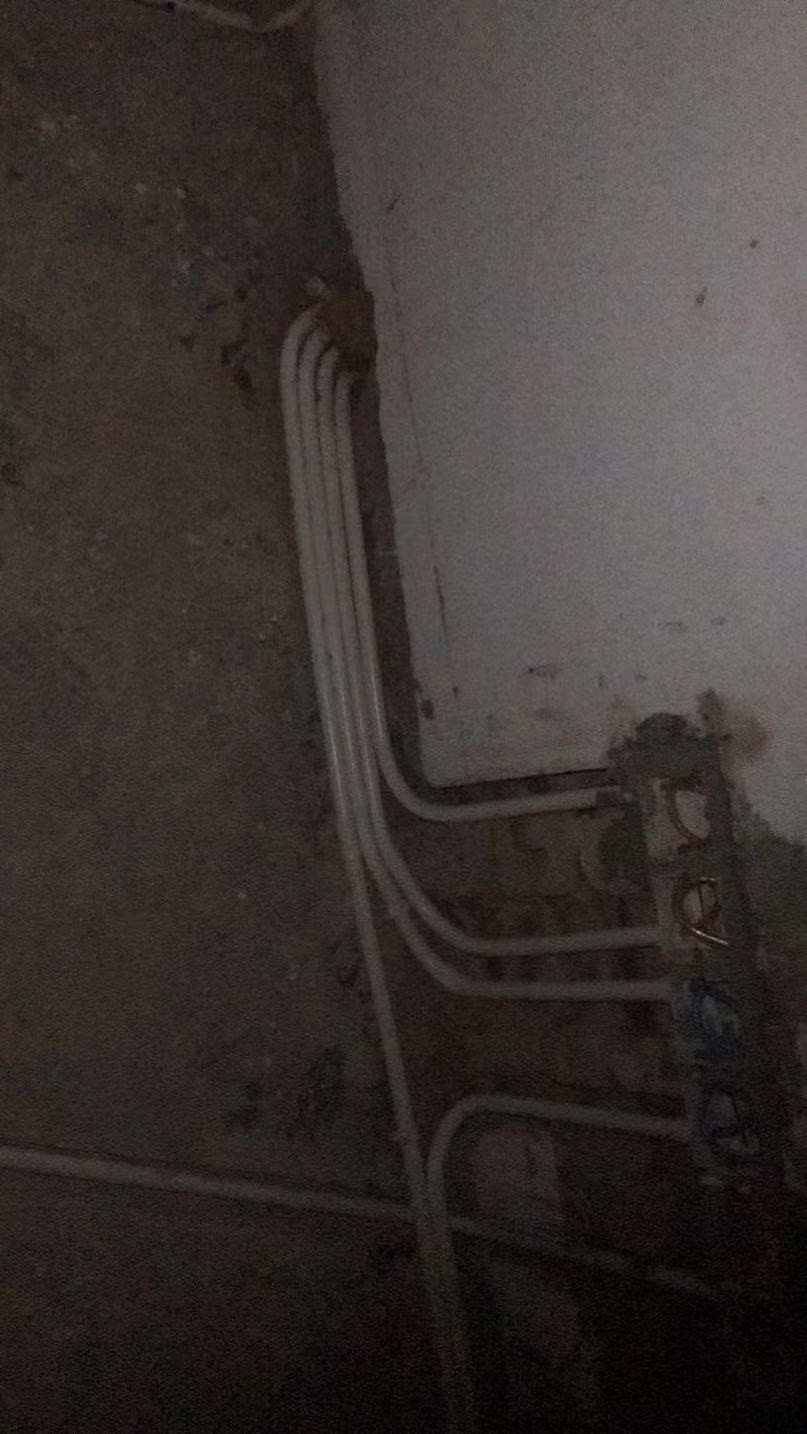 舊的強(qiáng)電箱和電線都沒拆,新安裝的水管都掛在那