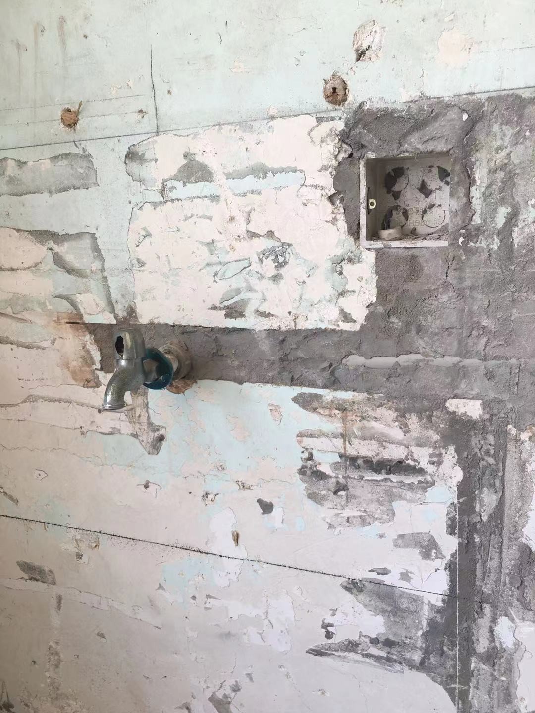 百安居施工后的墻面,舊管還在,百安居自稱的工藝一流