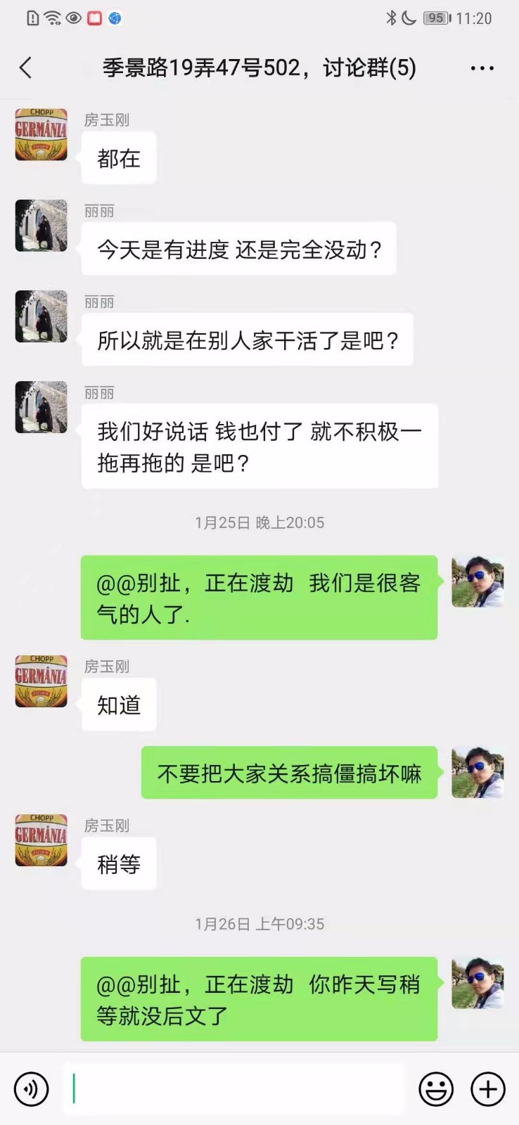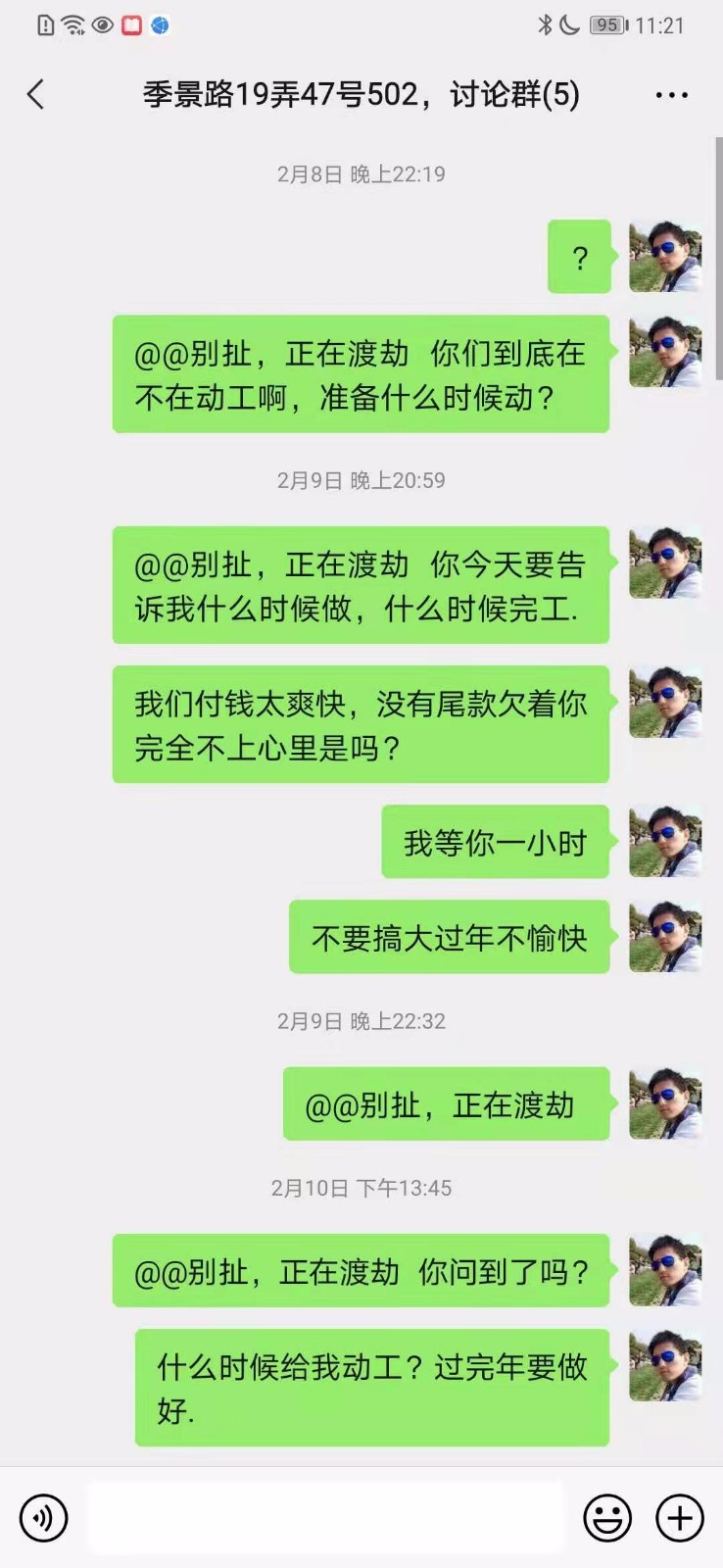 - 3月底再次告知等清明后3-4天就會收工但是截止4-8未有施工