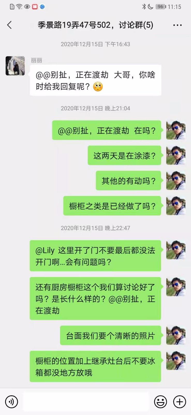 -查看溝通記錄大致列舉最近一個月在甲方已經(jīng)告知目前租借的房屋房東已經(jīng)賣房完成的情況下之裝修進(jìn)度(此外幾乎每天3-4 通電話)