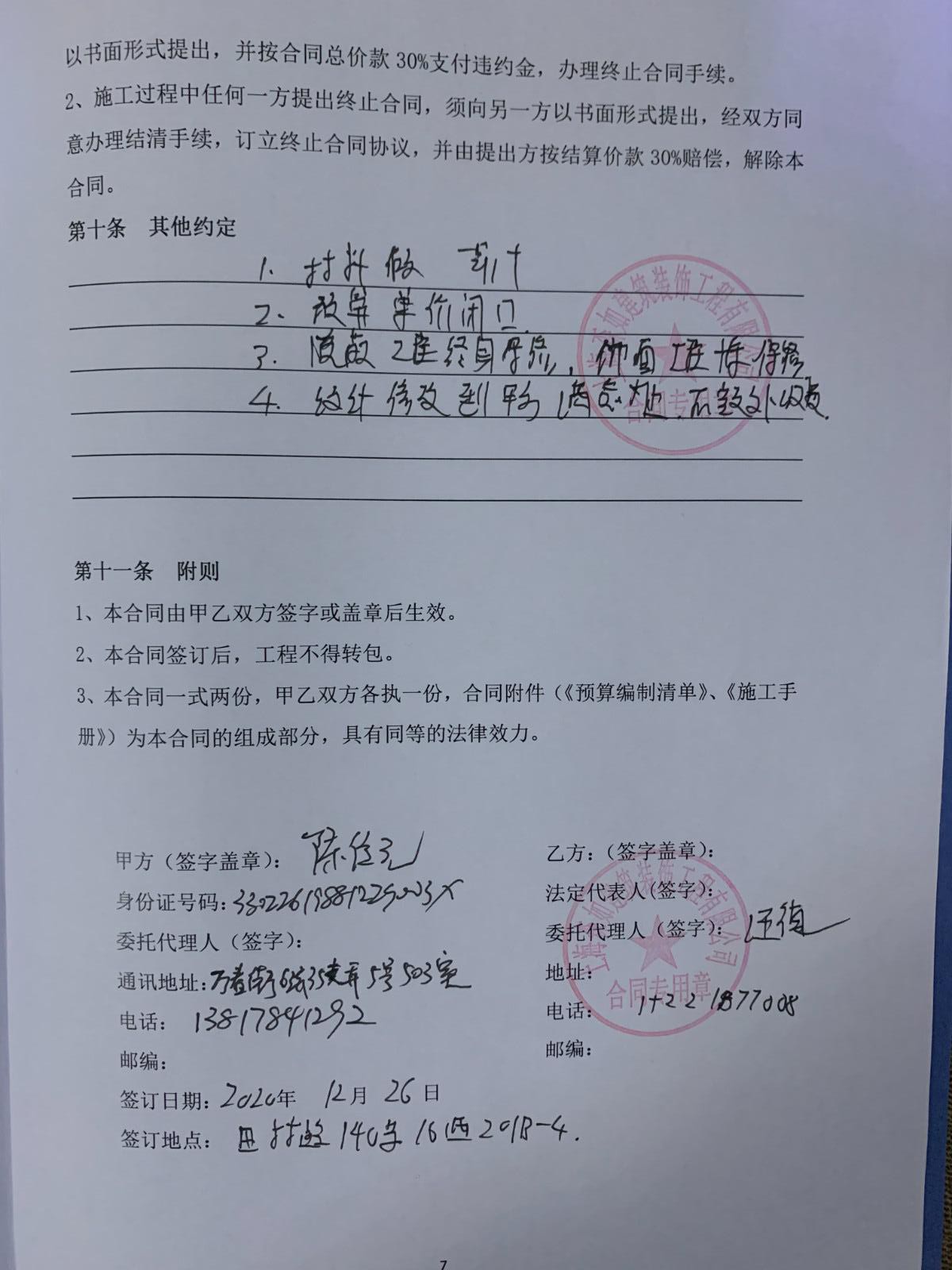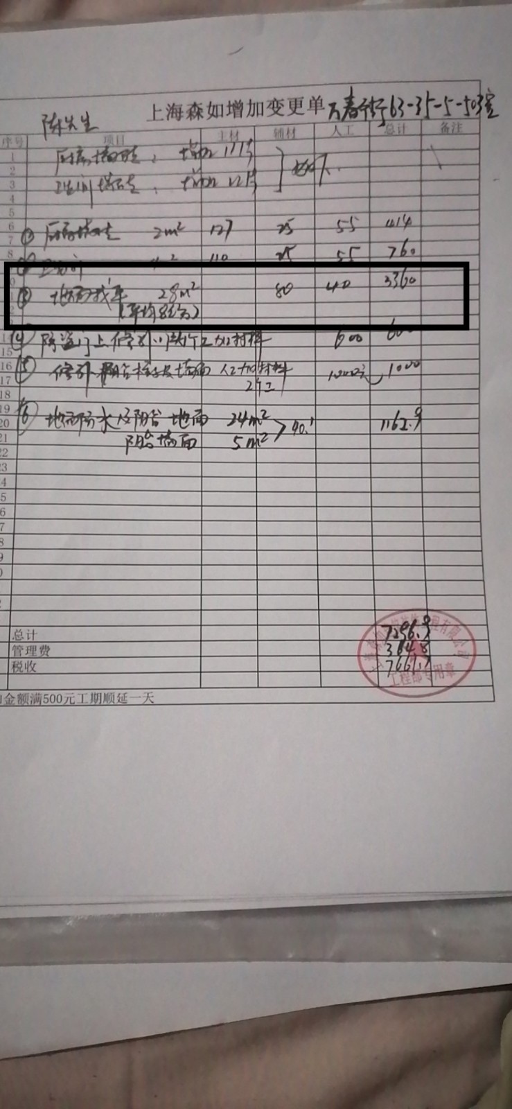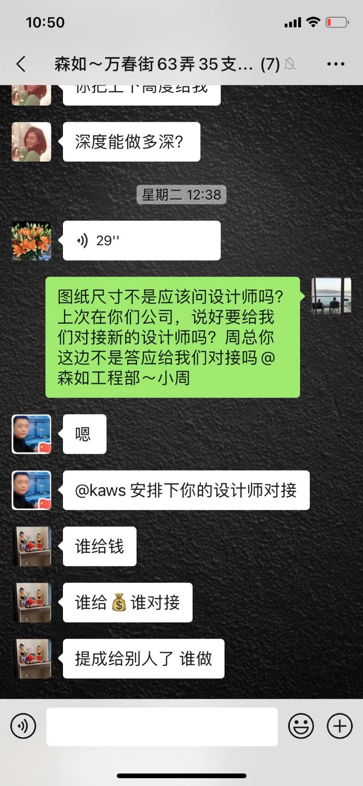 2021年4月18日,該公司施工隊在沒有事先與我約定的情況下,在我家進(jìn)行地面找平,2021年4月26日,施工隊負(fù)責(zé)人現(xiàn)場告知地面找平有10公分左右的厚度(有視頻為證),2021年5月6日施工隊負(fù)責(zé)人提供施工增項單時告知我全屋地面找平平均厚度為8公分(有照片為證),并稱實際廚房、陽臺、衛(wèi)生間找平厚度有10公分,但根據(jù)我事先咨詢第三方質(zhì)檢公司(土巴兔旗下質(zhì)檢公司)得知一般地面找平在3到4公分比較合理,于是我向該公司施工隊提出異議,并要求他們拿出地面找平平均厚度有8公分的測量依據(jù)。我多次與該公司負(fù)責(zé)人和施工隊負(fù)責(zé)人溝通(主要是在裝修的微信群里)并向該公司表明我們作為消費者應(yīng)享有該有的知情權(quán)(告知我地面找平的測量依據(jù)),施工隊的負(fù)責(zé)人和該公司負(fù)責(zé)人拒絕提供相關(guān)的測量依據(jù),以我們沒有到現(xiàn)場為由,要求我們認(rèn)可他們的增項單并支付相關(guān)費用。
