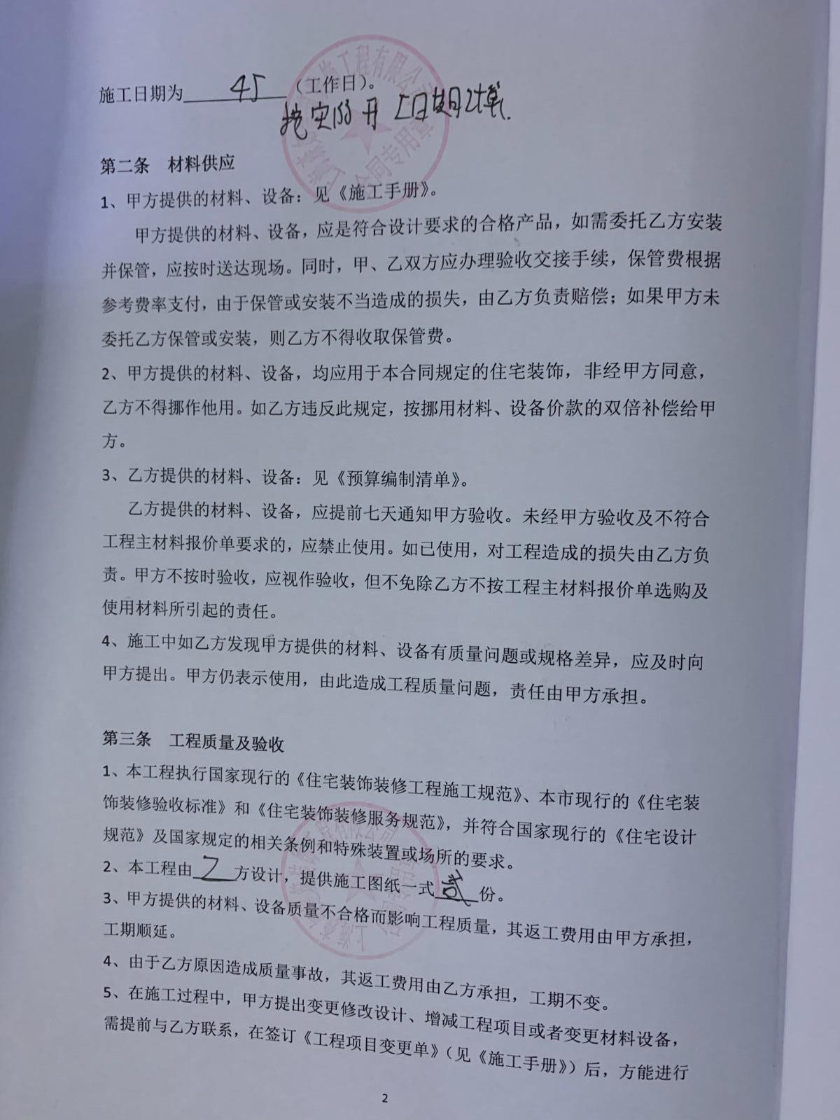 2020年12月26日與上海森如建筑裝飾工程有限公司簽訂裝修合同(工期45個工作日),根據(jù)合同第十條第4款明確約定,該公司提供的裝修設(shè)計圖紙應(yīng)當(dāng)令我們滿意為止,且不額外收取費用。但該公司自2021年1月6日現(xiàn)場施工至2021年3月22日,并未提供我們滿意且經(jīng)我們確認(rèn)的裝修設(shè)計圖紙。我們多次與該公司協(xié)商,希望貴司能夠指派專業(yè)的設(shè)計師對裝修設(shè)計圖紙進(jìn)行修改、定稿,進(jìn)而不影響房屋裝修進(jìn)程,但貴司以設(shè)計師辭職、設(shè)計師不在為由,拒絕繼續(xù)指派設(shè)計師。于是我們在2021年3月22日給該公司發(fā)了告知函,要求他們繼續(xù)指派設(shè)計師,但所謂新的設(shè)計師也沒有按照合同要求提供我們滿意且經(jīng)我們確認(rèn)的裝修設(shè)計圖紙,而且至今保持消極態(tài)度,對我們這邊的要求不理不睬,敷衍了事,導(dǎo)致我們的整體工期拖延。另外該公司還以主材下架、主材價格上漲為由,拒絕按照事先簽訂的預(yù)算表提供主材(防盜門、陽臺窗戶),并讓我們支付價格更高的主材費用。