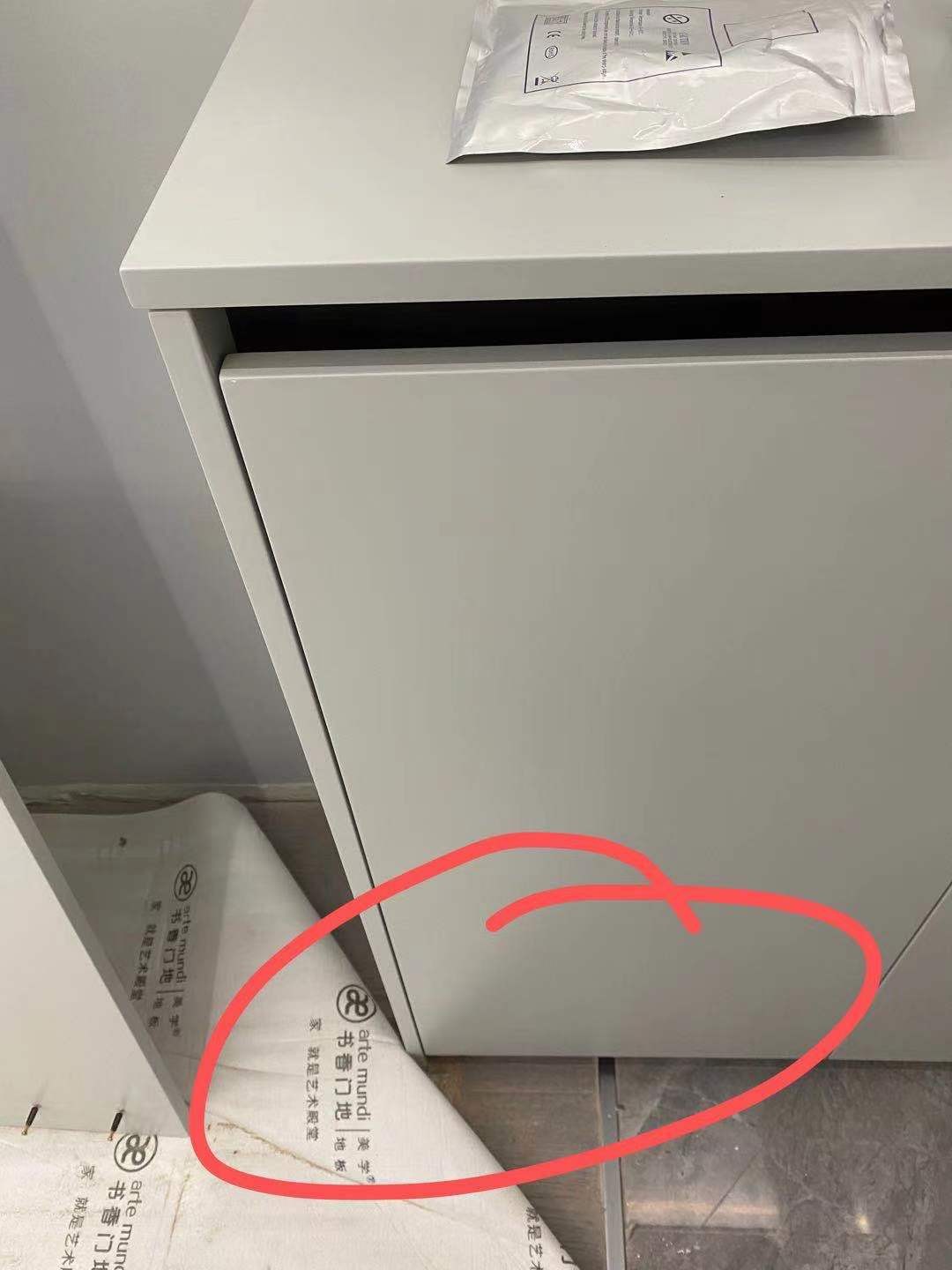 2、入戶門開門超90度與廚房門相撞(現(xiàn)我們自行聯(lián)系入戶門供應(yīng)商重新安裝)