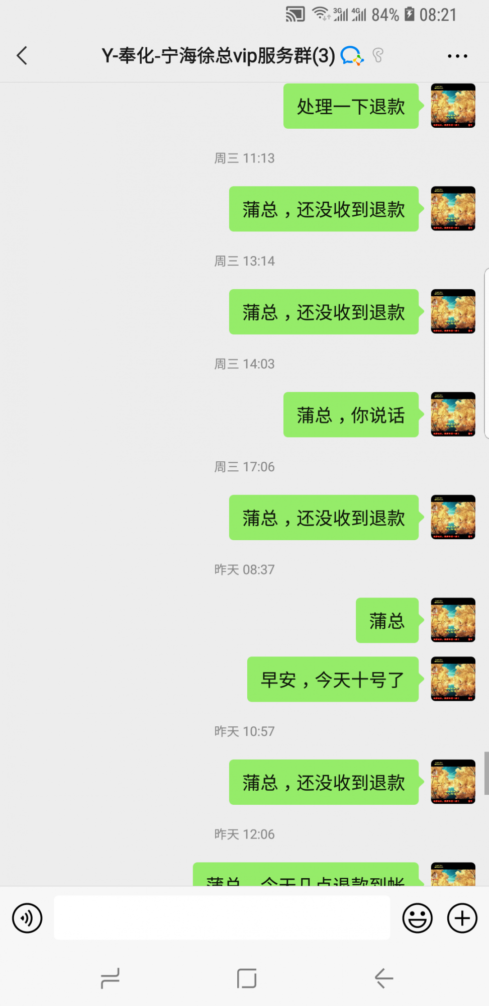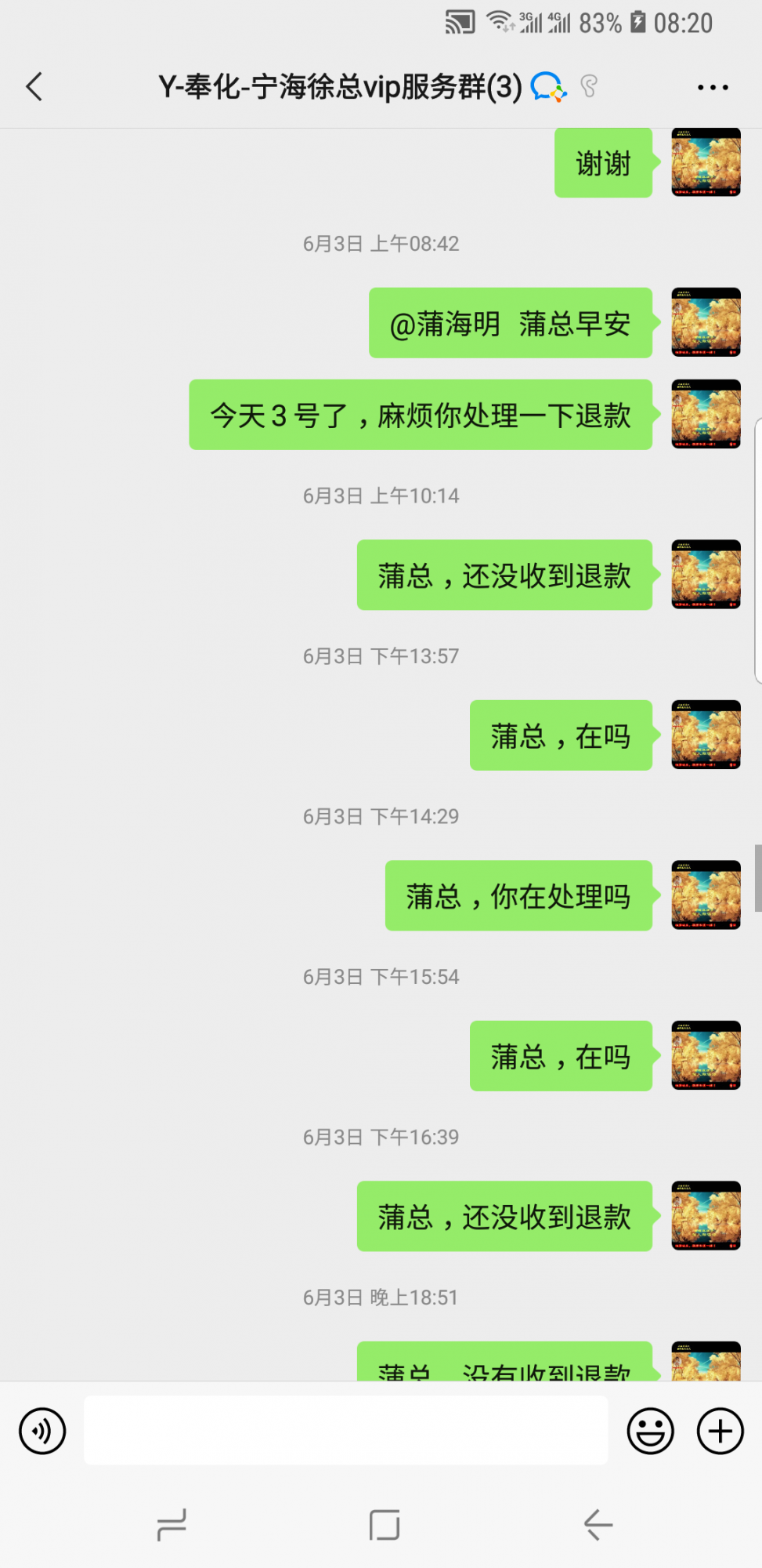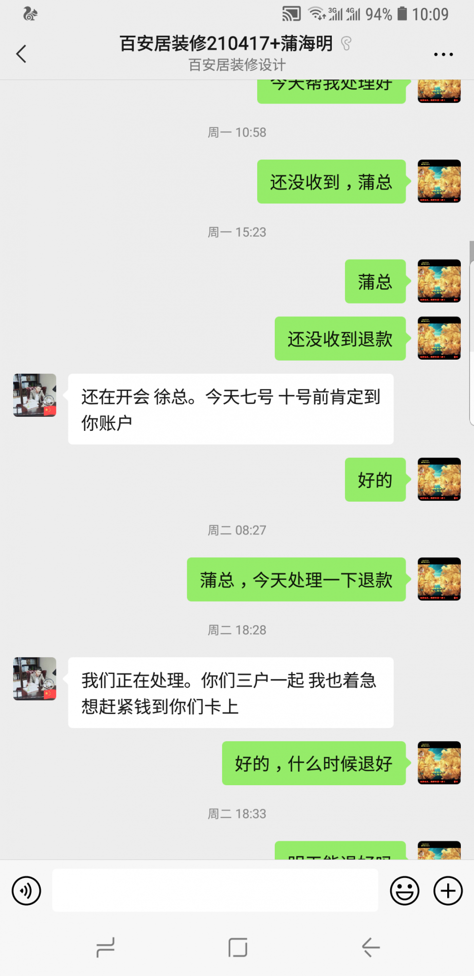 今天6.11號(hào),微信問負(fù)責(zé)人李坤貞什么時(shí)候退款,微信電話給他,都被拒絕!