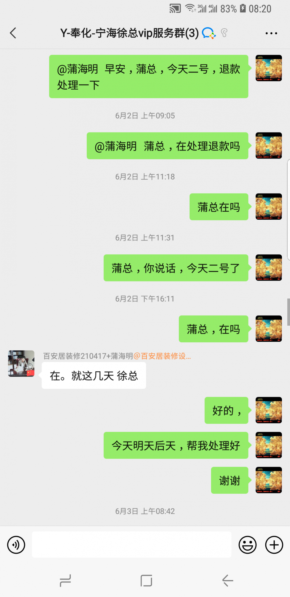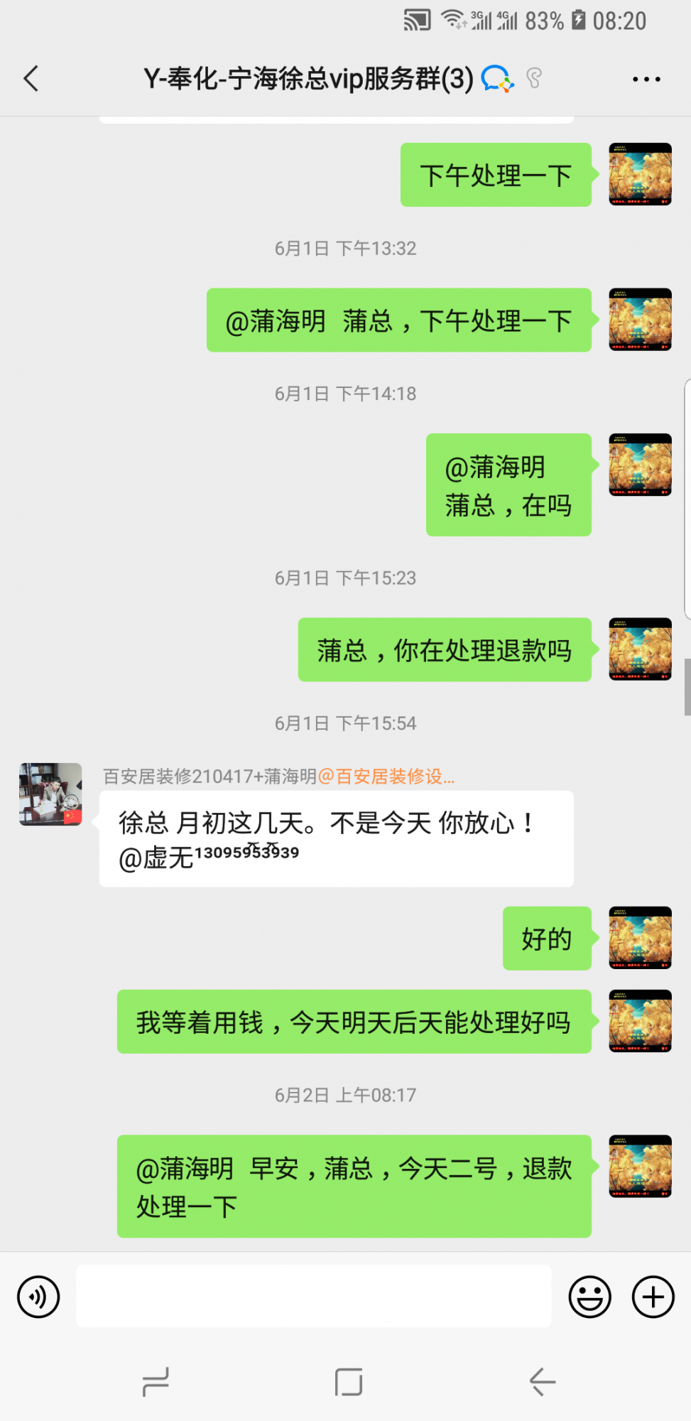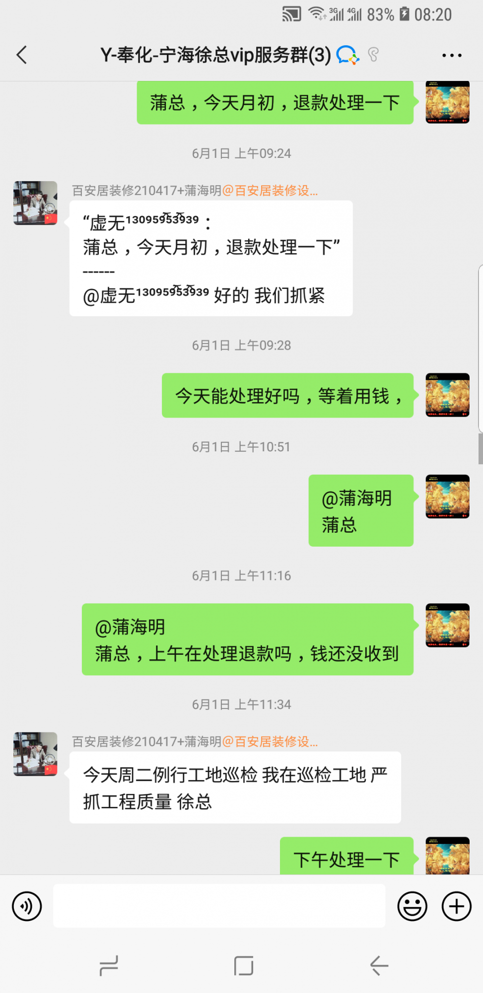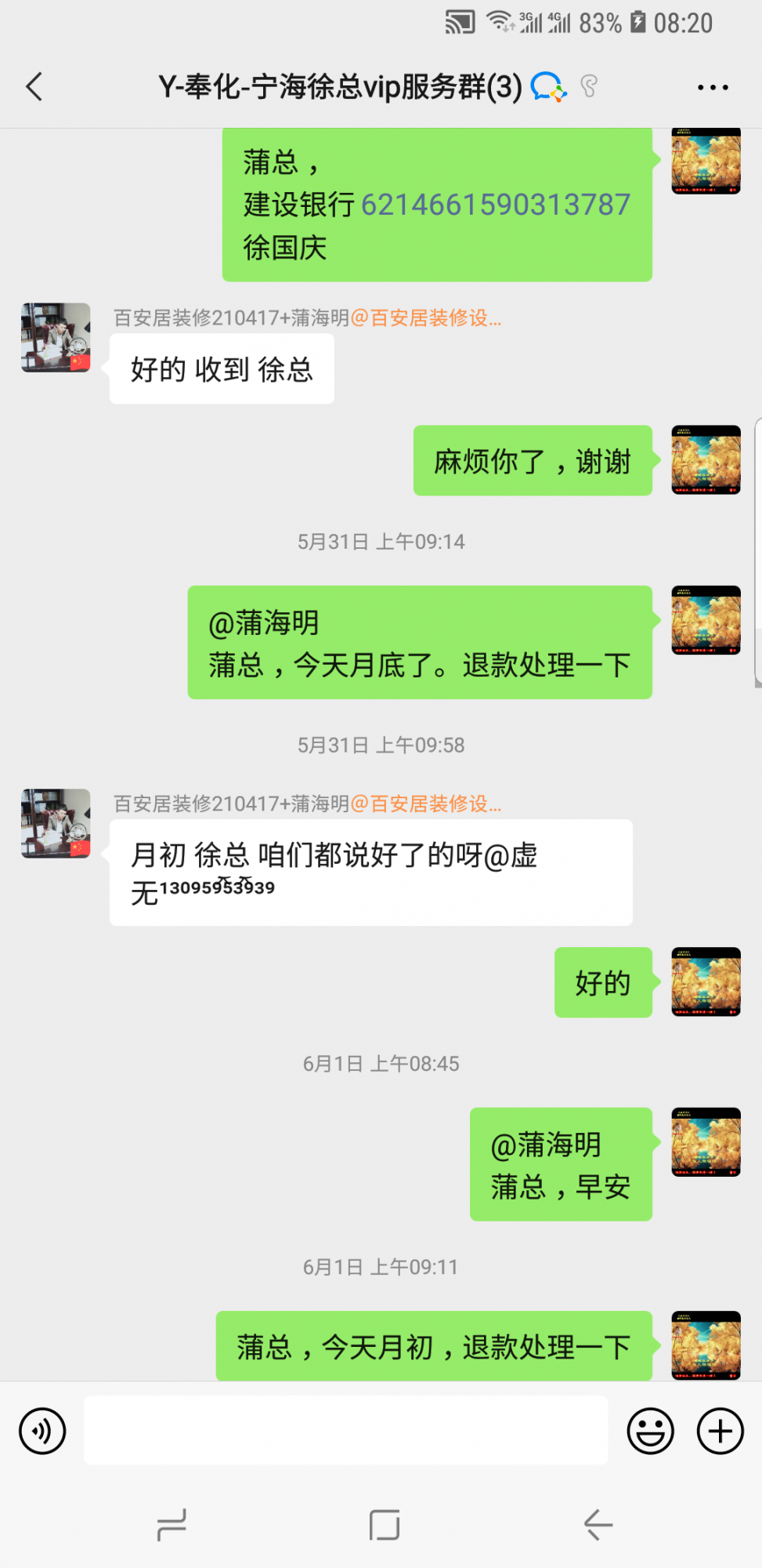 今天6.11號(hào),微信問負(fù)責(zé)人李坤貞什么時(shí)候退款,微信電話給他,都被拒絕!