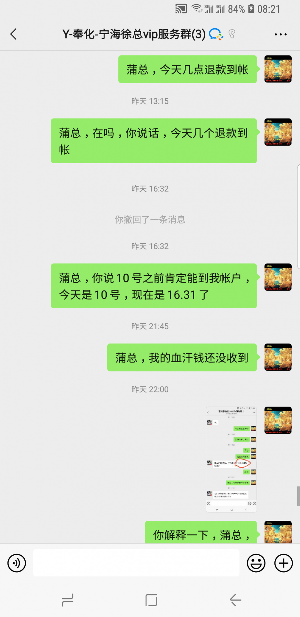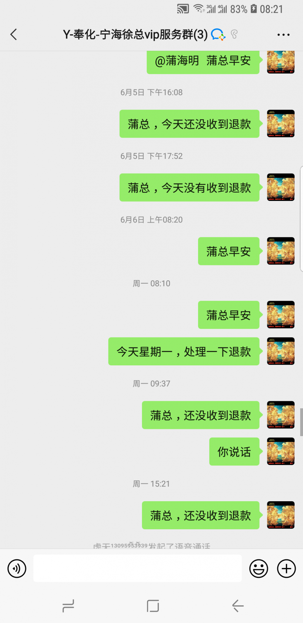 5.9號(hào)下午后,我產(chǎn)生了懷疑,產(chǎn)生了害怕,我在群里質(zhì)問原因,并要求退款,