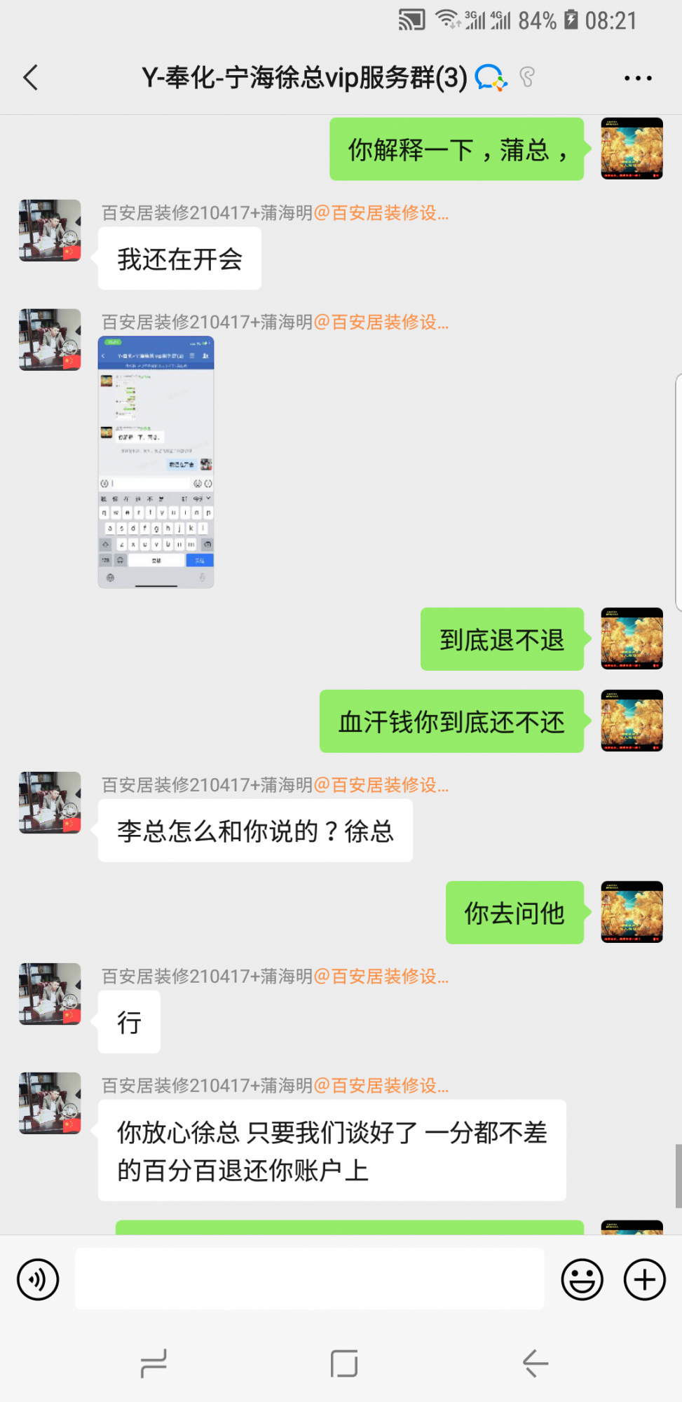 在5.23號(hào),蒲海明叫我下載百安居app,說可以方便查看裝修進(jìn)度,我就下載了,下載后要輸入手機(jī)號(hào)姓名登錄,登錄后告訴我里面可以看合同,點(diǎn)開后發(fā)現(xiàn)合同已簽名,也就是登錄時(shí)的名字已轉(zhuǎn)到合同,在登錄的時(shí)候,簽了好幾次姓名,閃退了又提示簽名,提交了又閃退又簽名,經(jīng)過多次簽名后,才登錄打開百安居app!