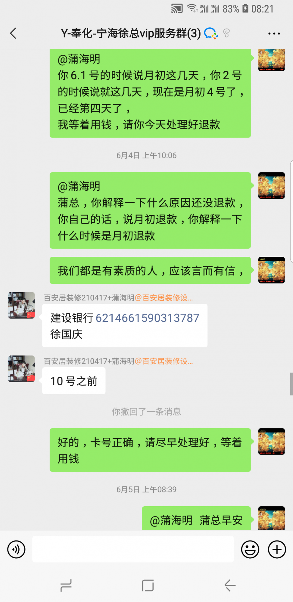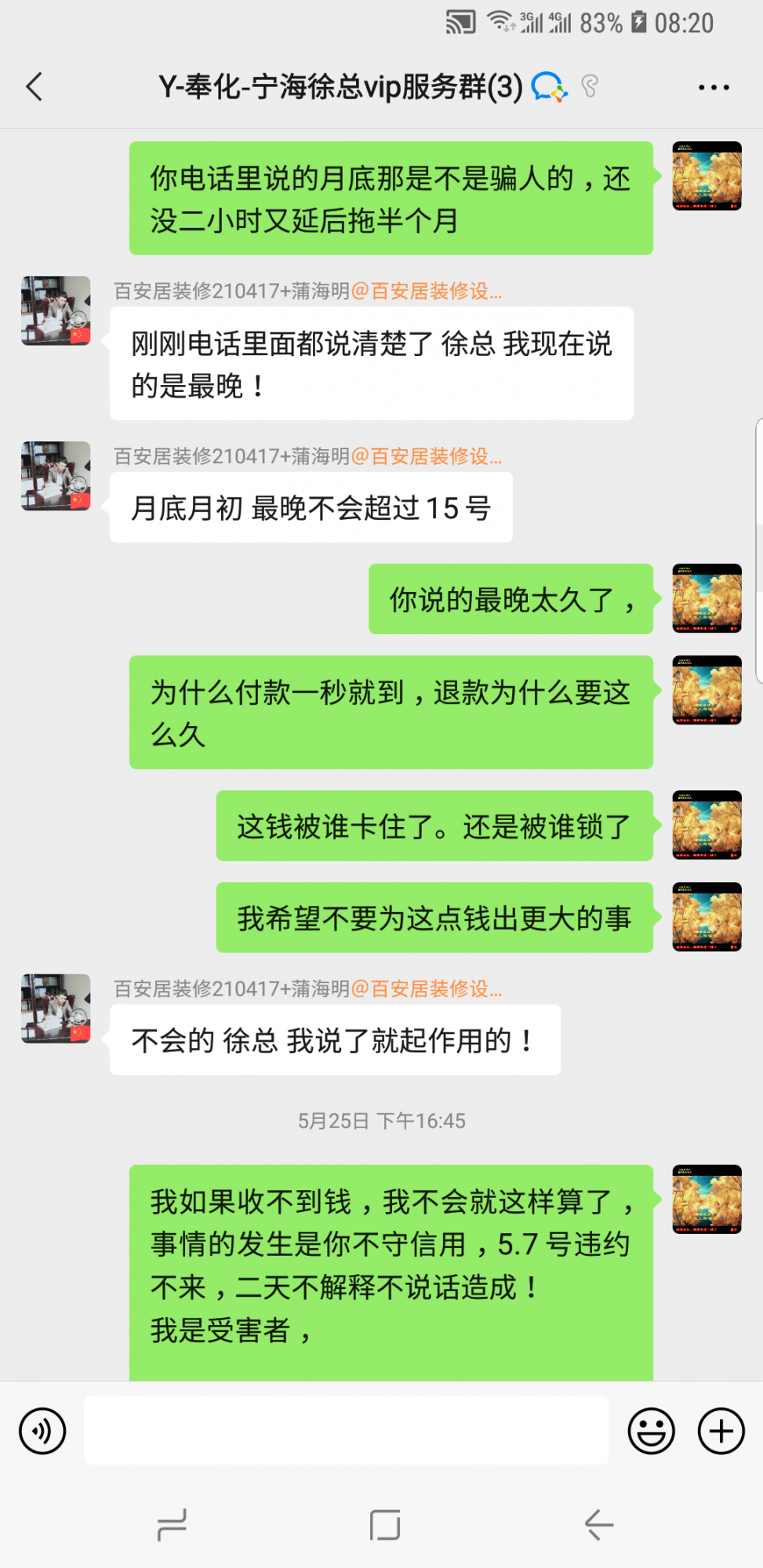 在5.25號(hào)的時(shí)候,蒲海明說6.15號(hào)之前到帳,然后又說月底月初 最晚不會(huì)超過15號(hào)