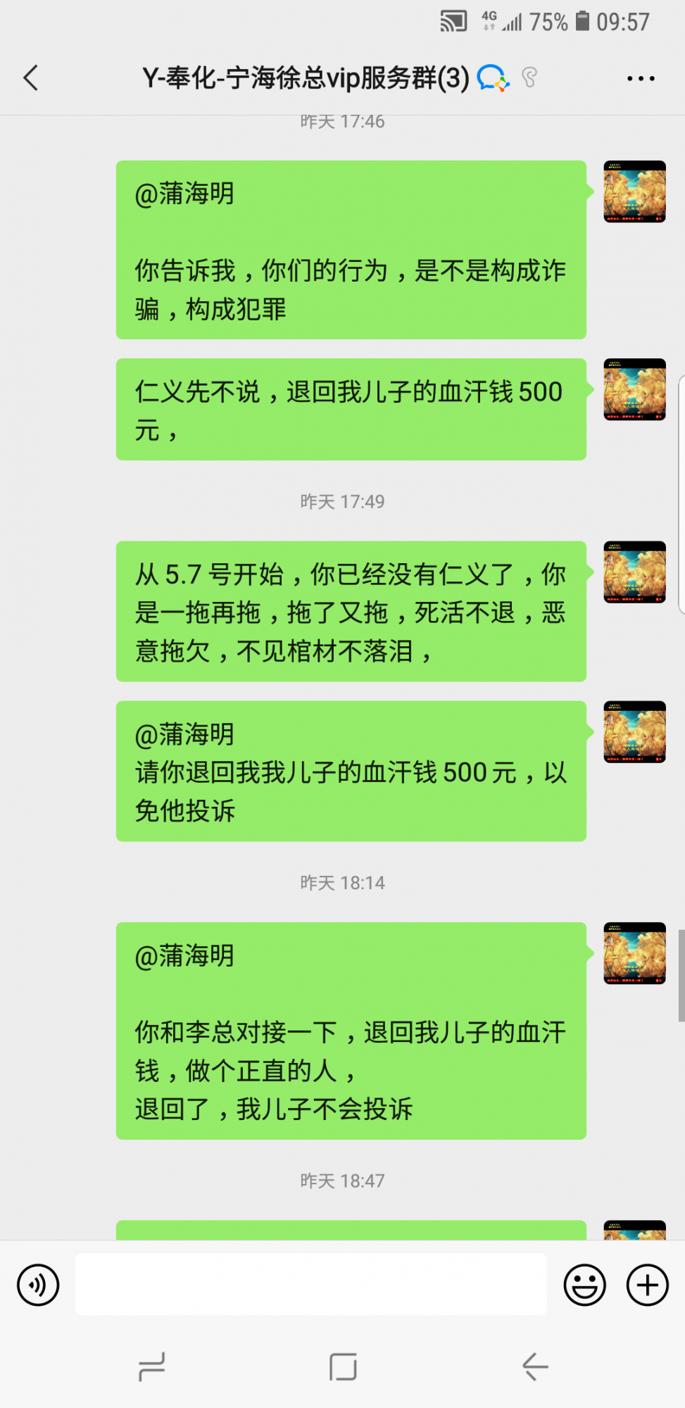 還有一個(gè)客戶告訴我也被騙了,錢也沒(méi)退,也要收取1000元違約金??!