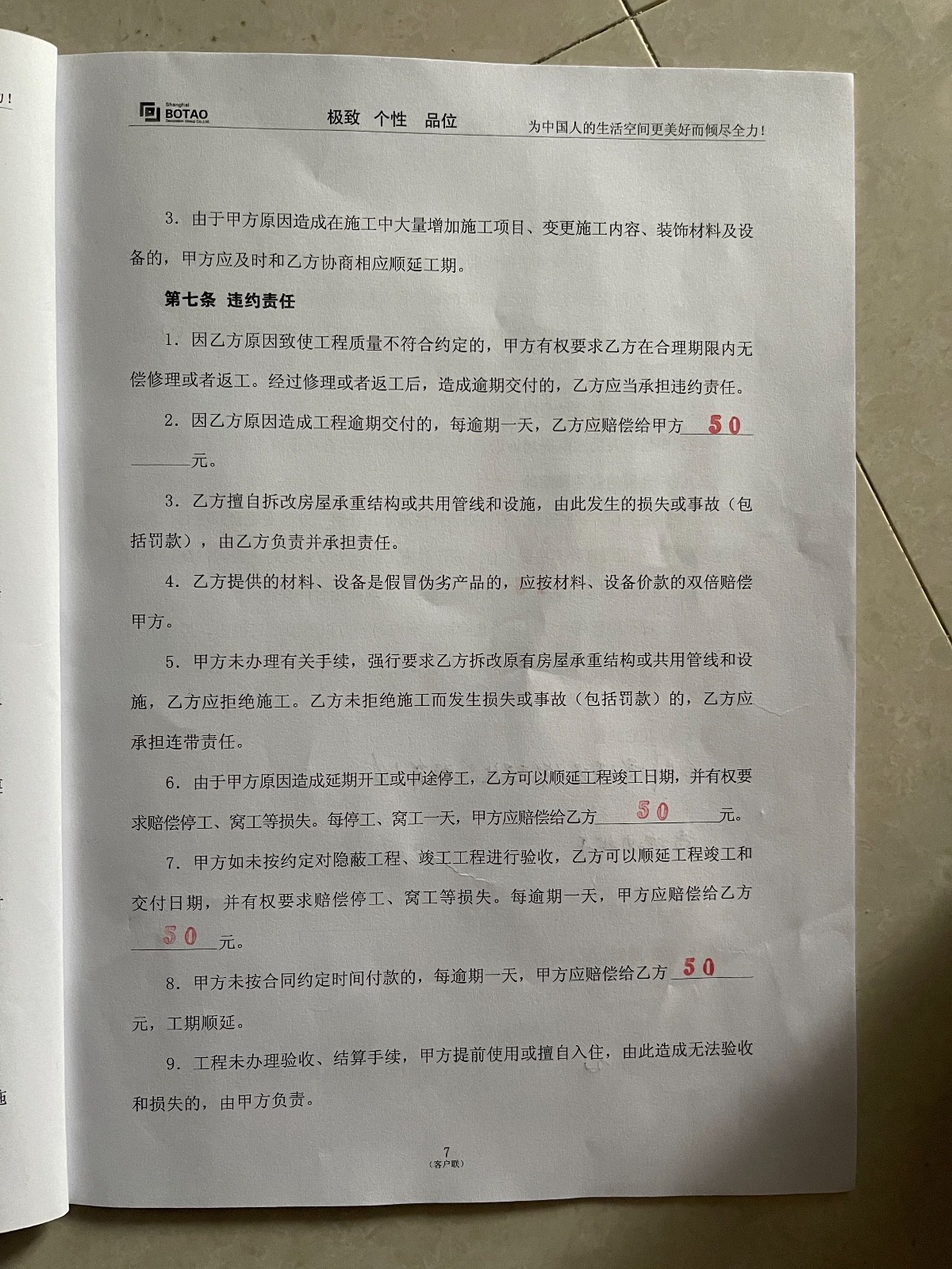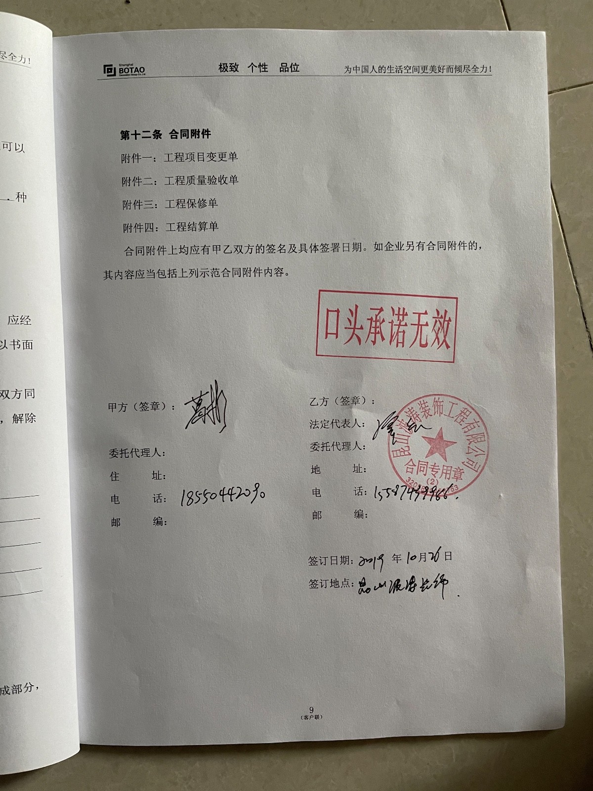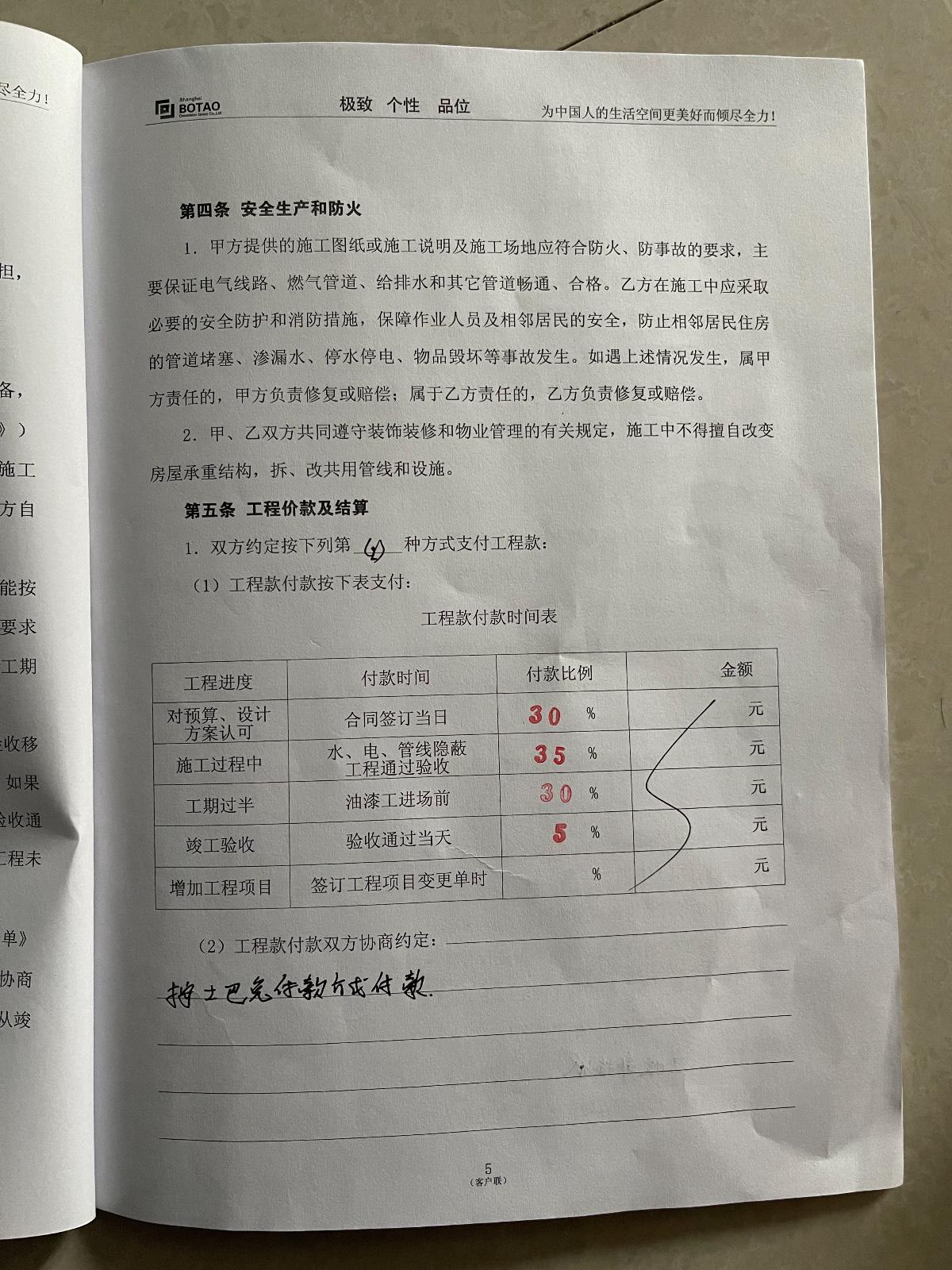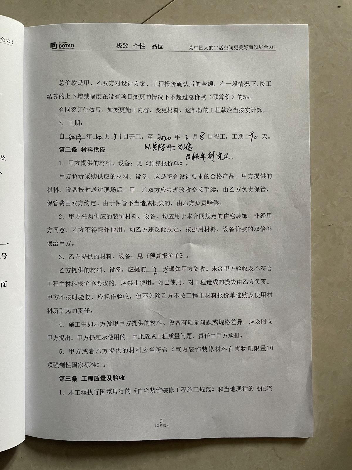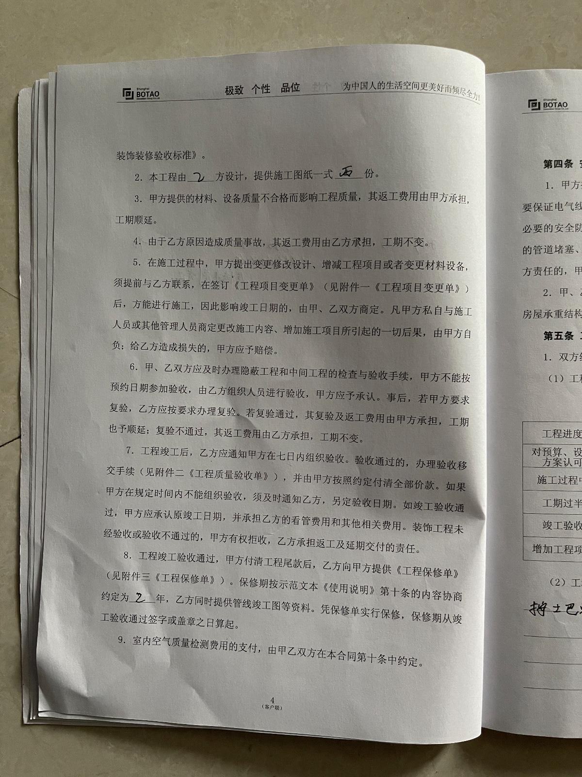 我于2019年10月26日昆山波濤裝飾有限公司簽訂裝修施工合同,工期為2019年10月31日至2020年2月8日,工期90天,裝修期間施工方各種拖延施工,直至2021年5月24日驗(yàn)收,驗(yàn)收方為土巴兔指派的人員驗(yàn)收,驗(yàn)收問(wèn)題很多,無(wú)人解決,裝修公司現(xiàn)場(chǎng)施工有些不會(huì)的竟然問(wèn)我怎么做,整個(gè)裝修過(guò)程一直都在扯皮推卸責(zé)任,上傳圖片為5月24日驗(yàn)收時(shí)拍攝。對(duì)于不滿意的地方要求裝修公司整改的,以各種理由推脫,對(duì)于墻面不平我和裝修公司說(shuō)燈打上去很難看,裝修公司回復(fù)讓我不要開(kāi)燈就可以了,類(lèi)似此類(lèi)話語(yǔ)不勝枚舉,荒謬至極。