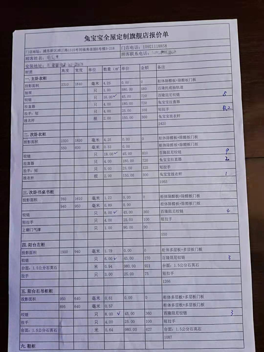隨后我們自查訂單,訂單上已包含氣撐的收費?;谶@種情況,我們根據(jù)訂單上的信息核查所有五金件安裝情況,發(fā)現(xiàn)如下: