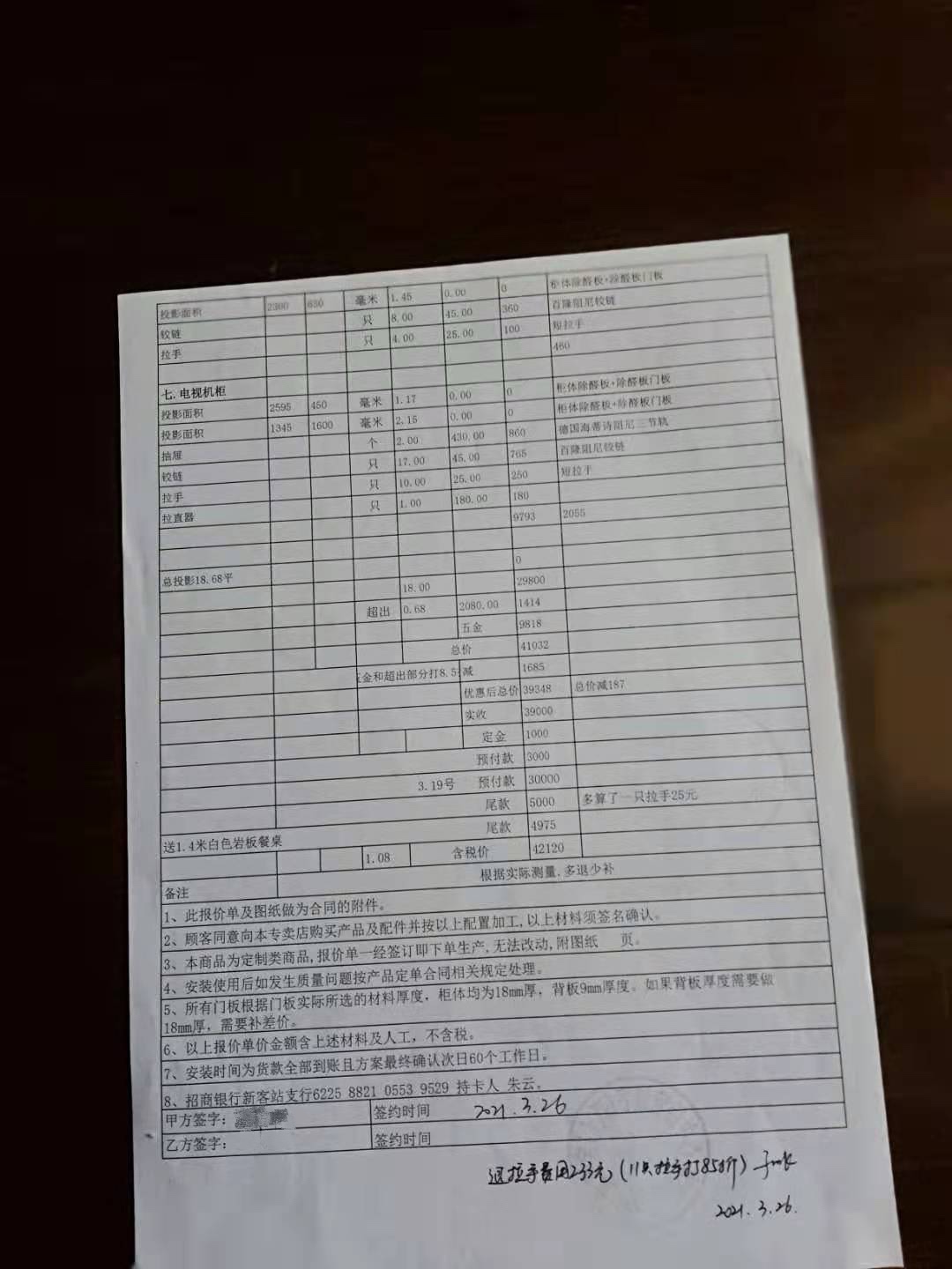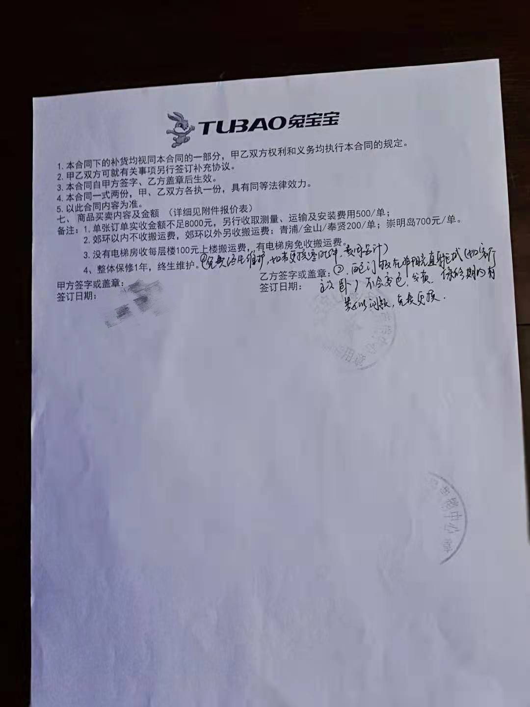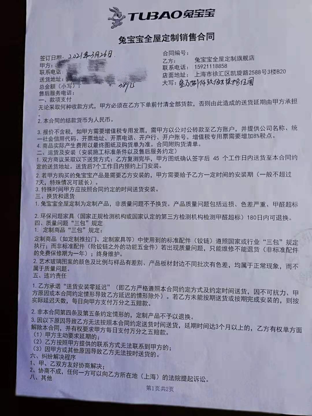 2021-1-10在上海兔寶寶全屋定制宜山路旗艦店達成初步意向,并付訂金。