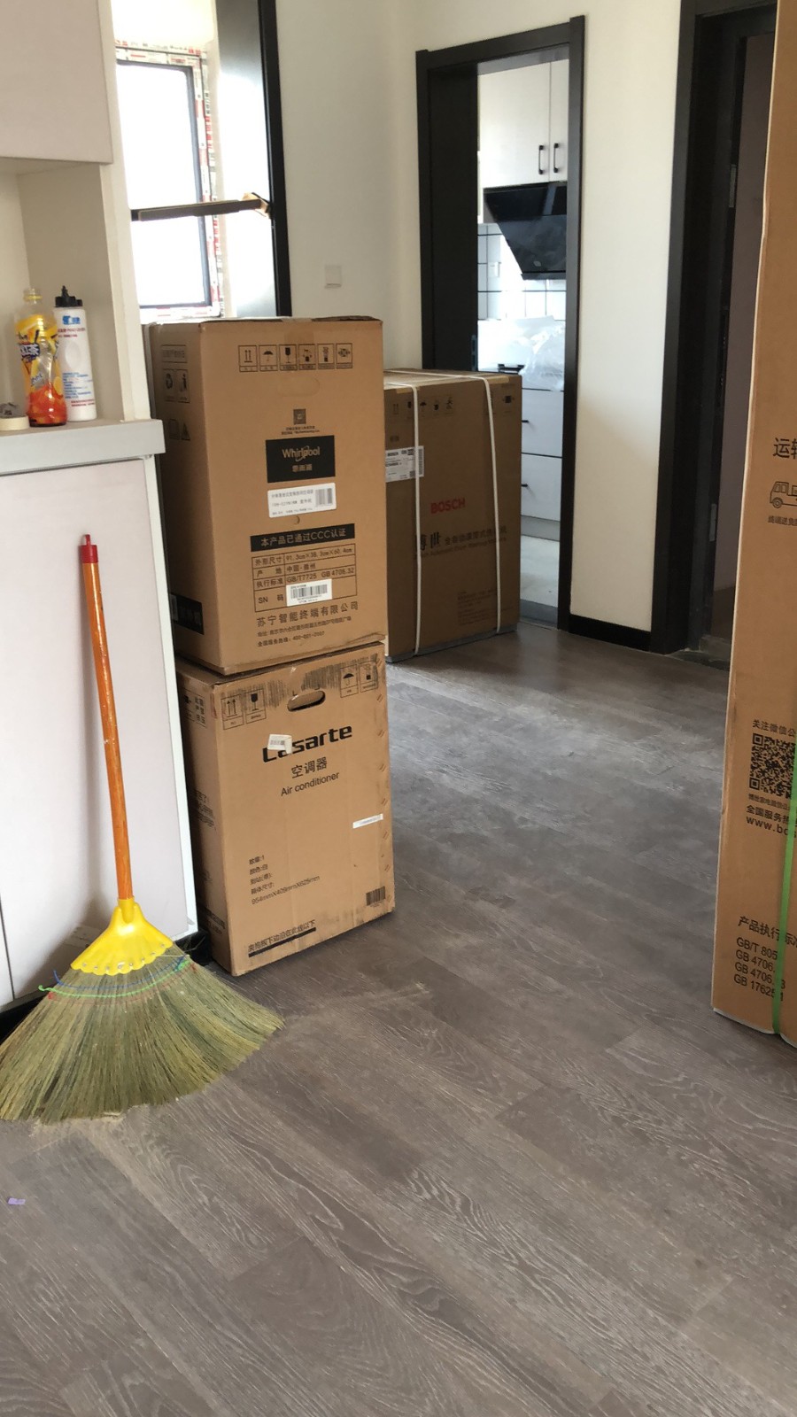6、廚房柜門合同寫明晶鋼板,但是做的并不是。廚房玻璃門,現(xiàn)場膠玻璃,玻璃上都是膠。貼腳線空的,窗套只有一半。所有柜子的門都是尺寸不對。還說就這點裝修費,想怎么樣。
