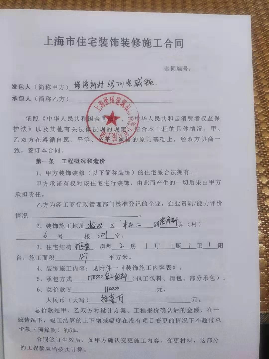 | 投訴類型 | 施工拖延 | 投訴人 | 沈** | 被投訴單位 | 上海聚瑾建筑裝修裝飾有限公司 |