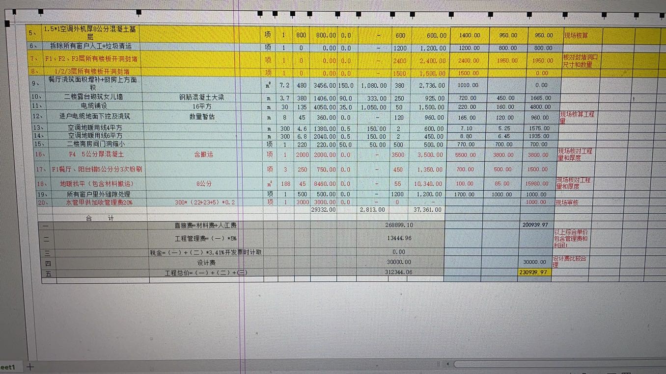 21.6.24發(fā)我的報(bào)價(jià)中有未施工內(nèi)容和重復(fù)增加算平方等內(nèi)容,金額增加至31萬(wàn)多。我找專業(yè)審計(jì)下來(lái)金額是23萬(wàn)。故意混淆抬高價(jià)格。