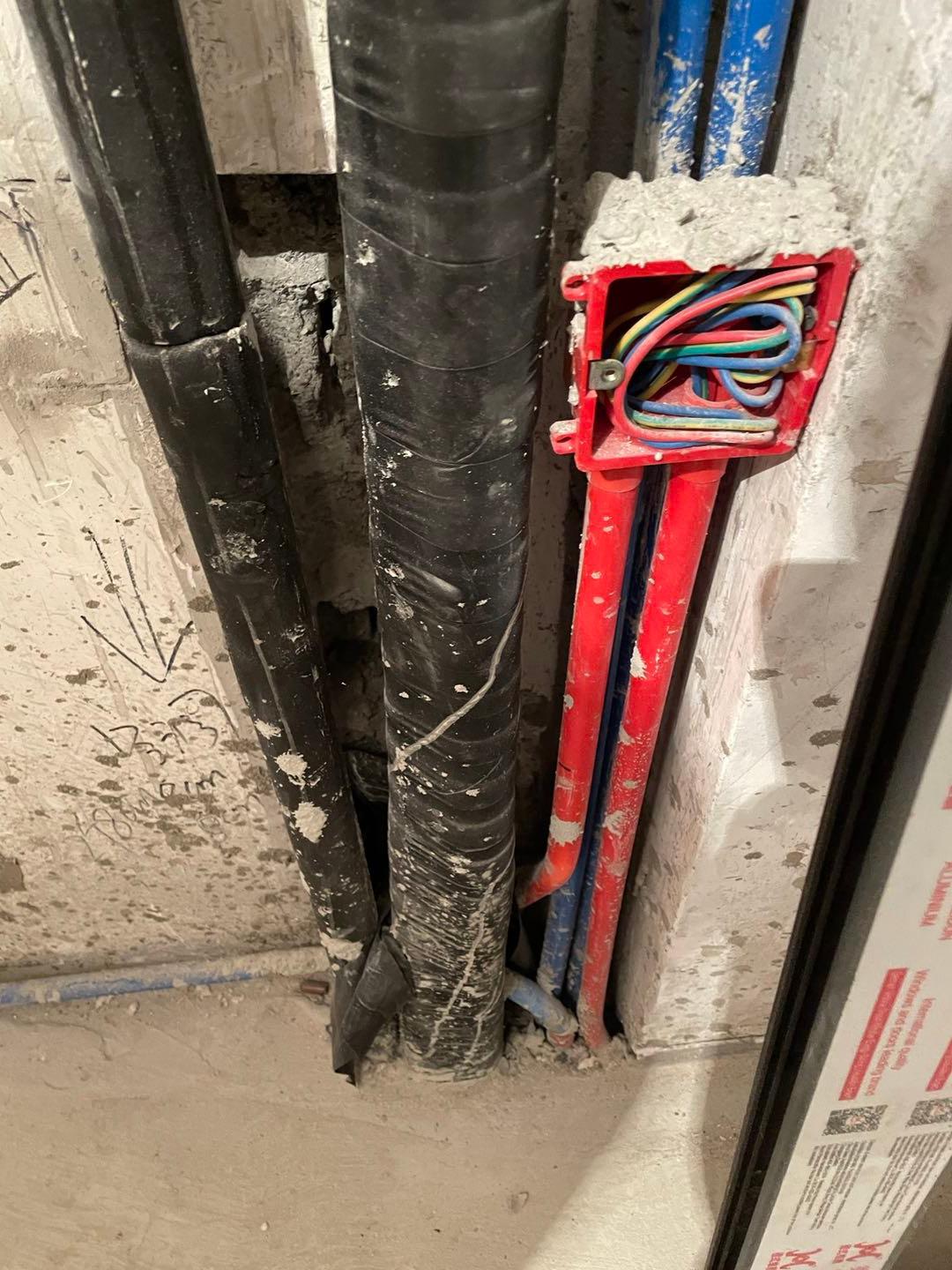 包管道交接點(diǎn)已經(jīng)出現(xiàn)漏水情況。頂部管道封堵用的是簡(jiǎn)單的發(fā)泡劑。也已產(chǎn)生漏水。
