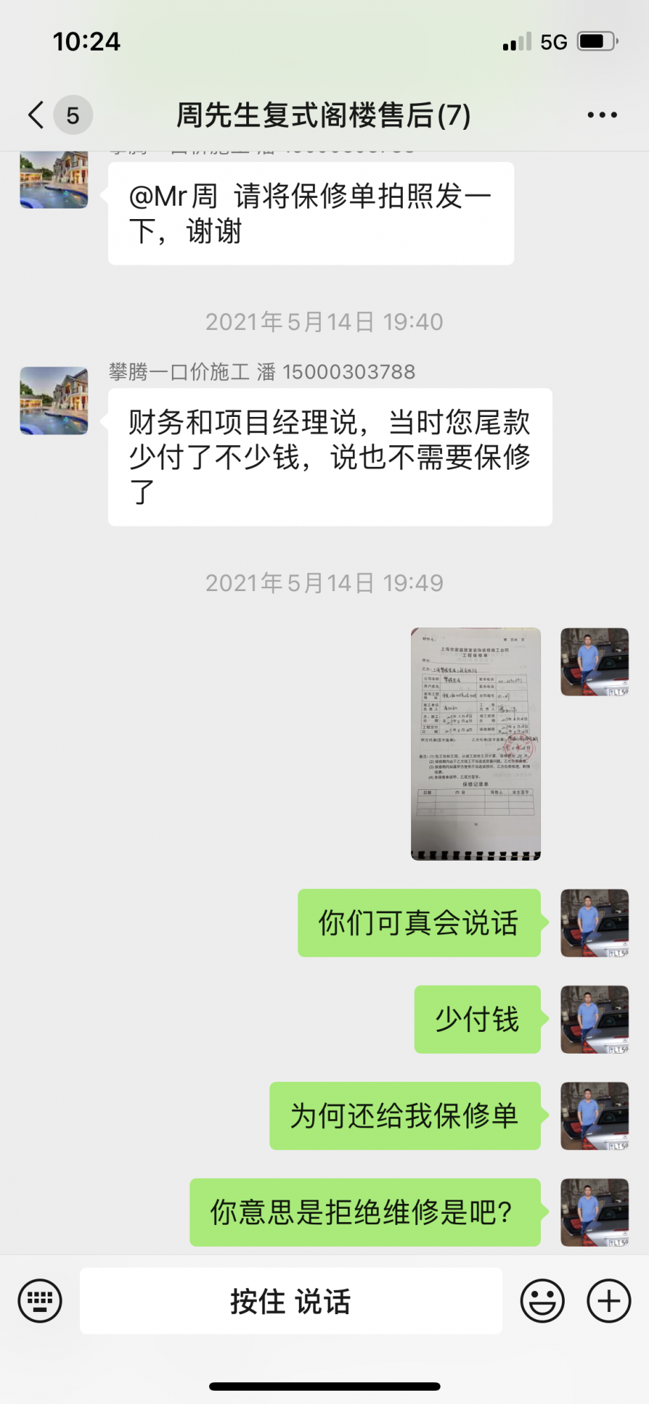 第一時間回復(fù),但未徹底解決,還是靠業(yè)主直接追裝修公司。。。。。。