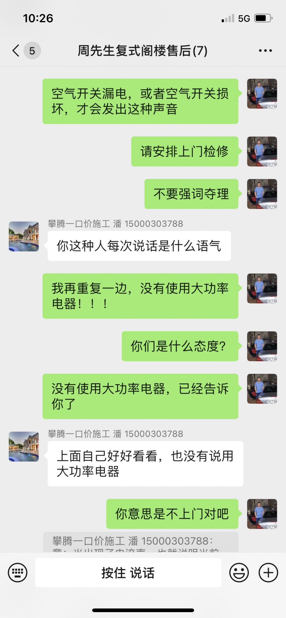 強詞奪理,服務(wù)拖沓,更換了空氣開關(guān),拆強電箱前面涂料損壞也未進(jìn)行任何修理,只能算把強電箱問題解決了,但是墻面破壞了無任何處理。