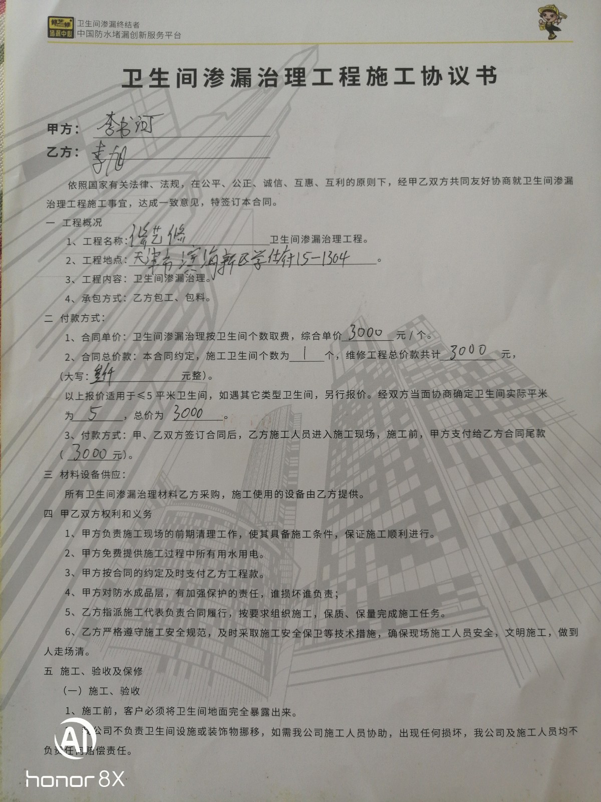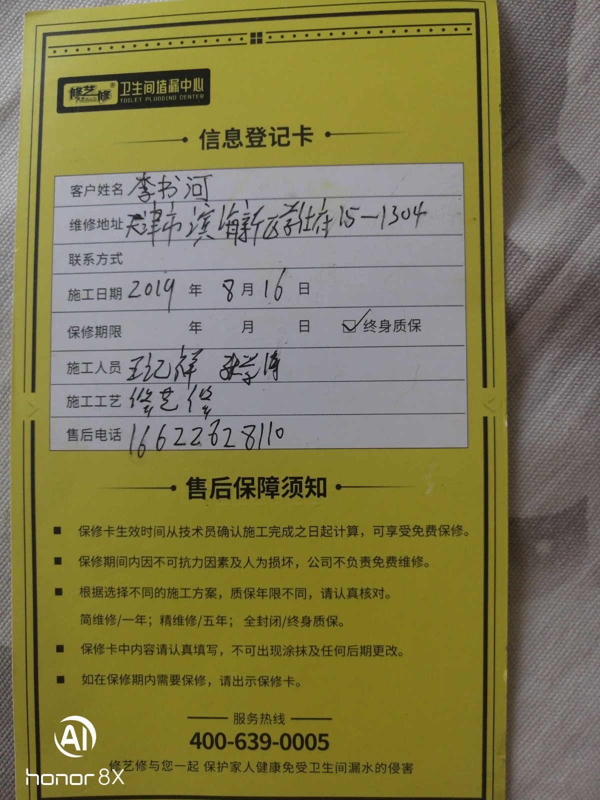 | 投訴類(lèi)型 | 施工質(zhì)量 | 投訴人 | 李** | 被投訴單位 | 北京修藝修防水科技發(fā)展有限公司 |