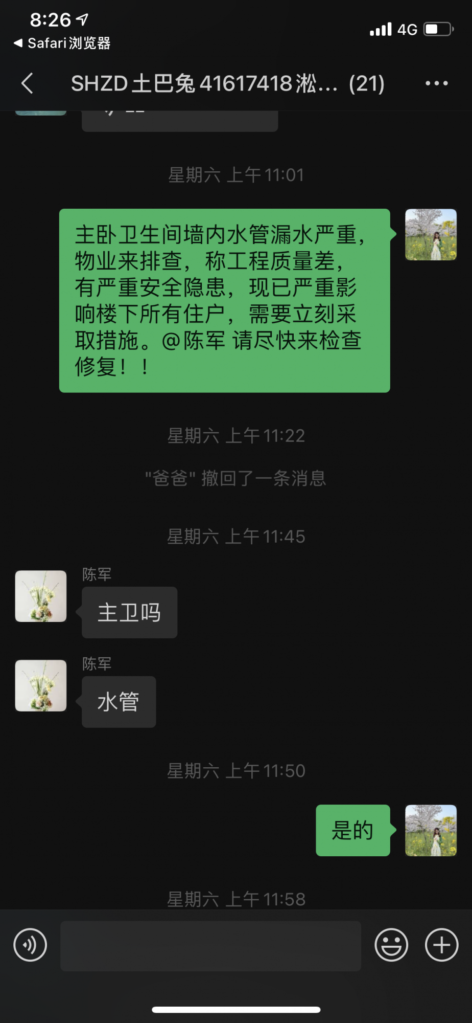 交房3個月不到的時間,主臥衛(wèi)生間水管漏水,被樓下4層的業(yè)主投訴到物業(yè)