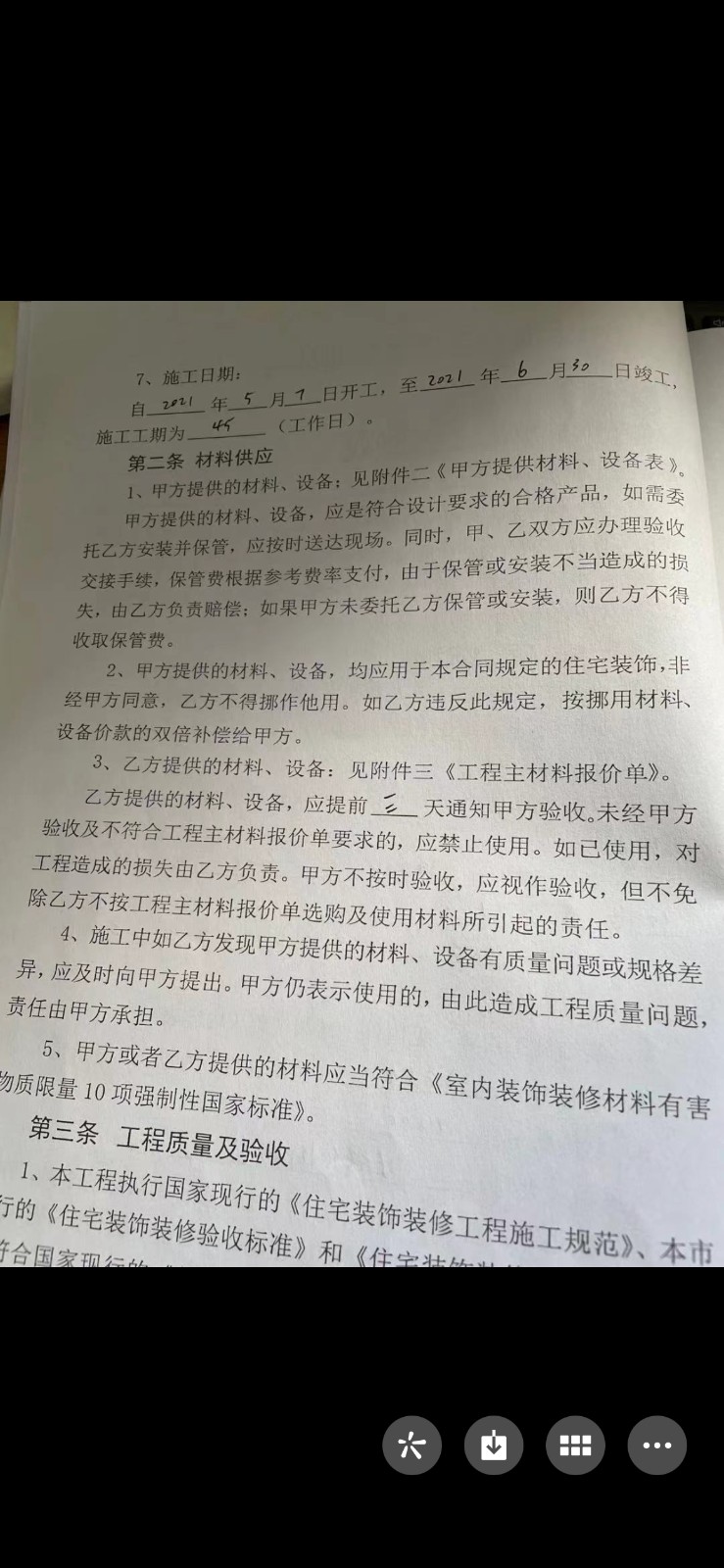 2021年5月7日與藤堂裝飾簽訂的合同,簽單時(shí)公司法人張偉巧舌如簧,為后續(xù)增項(xiàng)敲詐及惡意拖延工期在合同上為業(yè)主埋雷:合同尾款僅留5%,且工期拖延逾期費(fèi)僅為50元/日(無(wú)視裝修協(xié)會(huì)按房屋日租金市價(jià)計(jì)罰)。按合同規(guī)定,該裝修項(xiàng)目應(yīng)于2021年6月30日完工。然該公司裝修隊(duì)施工當(dāng)中沒(méi)有按照合同條款為業(yè)主進(jìn)行家具保護(hù),恣意拆除業(yè)主一扇鋁合金門(mén)且敲碎主臥窗玻璃一塊,后以梅雨天氣為由惡意拖延工期。在瓷磚鋪貼增項(xiàng)中,沒(méi)有給衛(wèi)生間做墻面防水,且地面瓷磚鋪貼高低不平,導(dǎo)致地漏處凸起,水流無(wú)法下泄,業(yè)主多次催促?gòu)垈?duì)工程進(jìn)行整改,張偉以裝修隊(duì)陳工對(duì)薪資不滿為由繼續(xù)拖延工期。截至2021年7月19日,該合同中列示的燈具及開(kāi)關(guān)安裝,鋁扣板吊頂?shù)仁马?xiàng)均未落實(shí),衛(wèi)生間防水及瓷磚整改也不予以回復(fù),裝修工程幾近爛尾。望有關(guān)部門(mén)介入監(jiān)管,且祈請(qǐng)消費(fèi)者朋友們擦亮眼睛,不要被無(wú)良商家蒙騙。