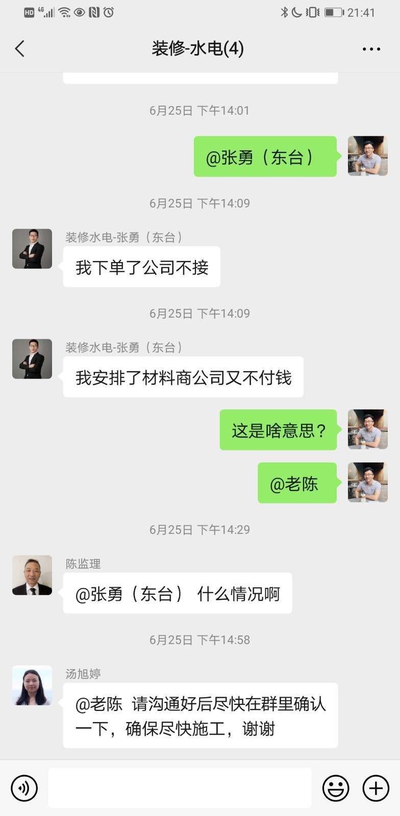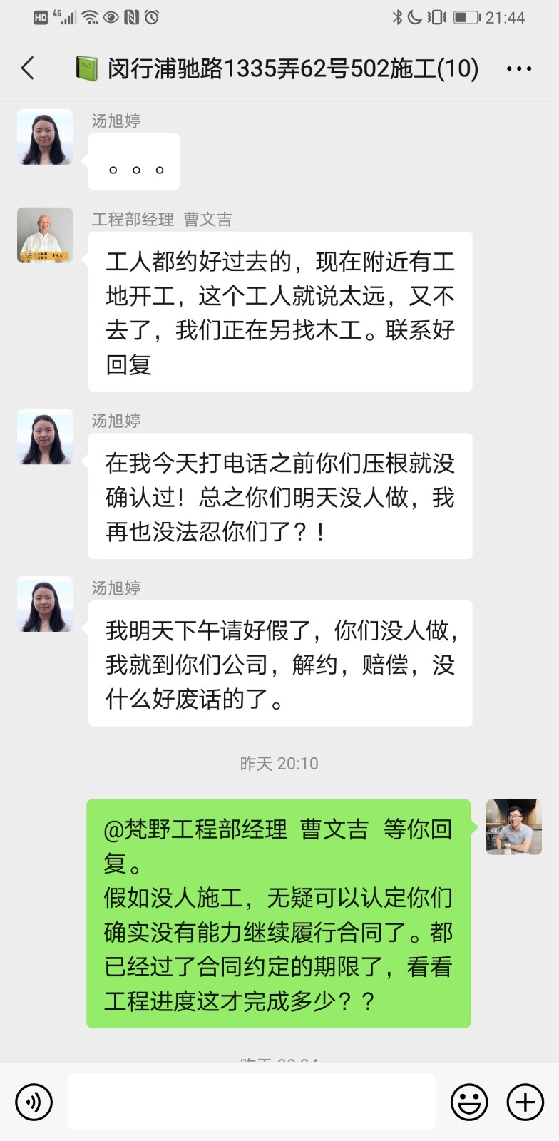 4月17日簽合同,簽之前說肯定3個(gè)月完工?,F(xiàn)在已經(jīng)過了合同上簽定的期限7月18日,然而林木階段還沒有開始,中間管理混亂不堪,長(zhǎng)時(shí)間一直是施工停滯的狀態(tài)。又是工人工資沒談攏不干了,要不就是交底沒搞清楚,錯(cuò)誤施工,各種找借口嚴(yán)重拖延施工進(jìn)度,現(xiàn)在基本是停滯了,而且公司方面態(tài)度又極差。真的是忍無可忍,這樣的裝修公司簡(jiǎn)直就是詐騙,簽合同前各種打包票,簽完以后完全不負(fù)責(zé)任!望相關(guān)部門嚴(yán)厲核查這家企業(yè),就會(huì)做自媒體宣傳打廣告,實(shí)際施工能力、管理能力、服務(wù)態(tài)度真的是一塌糊涂!望協(xié)會(huì)為業(yè)主主持公道?。?