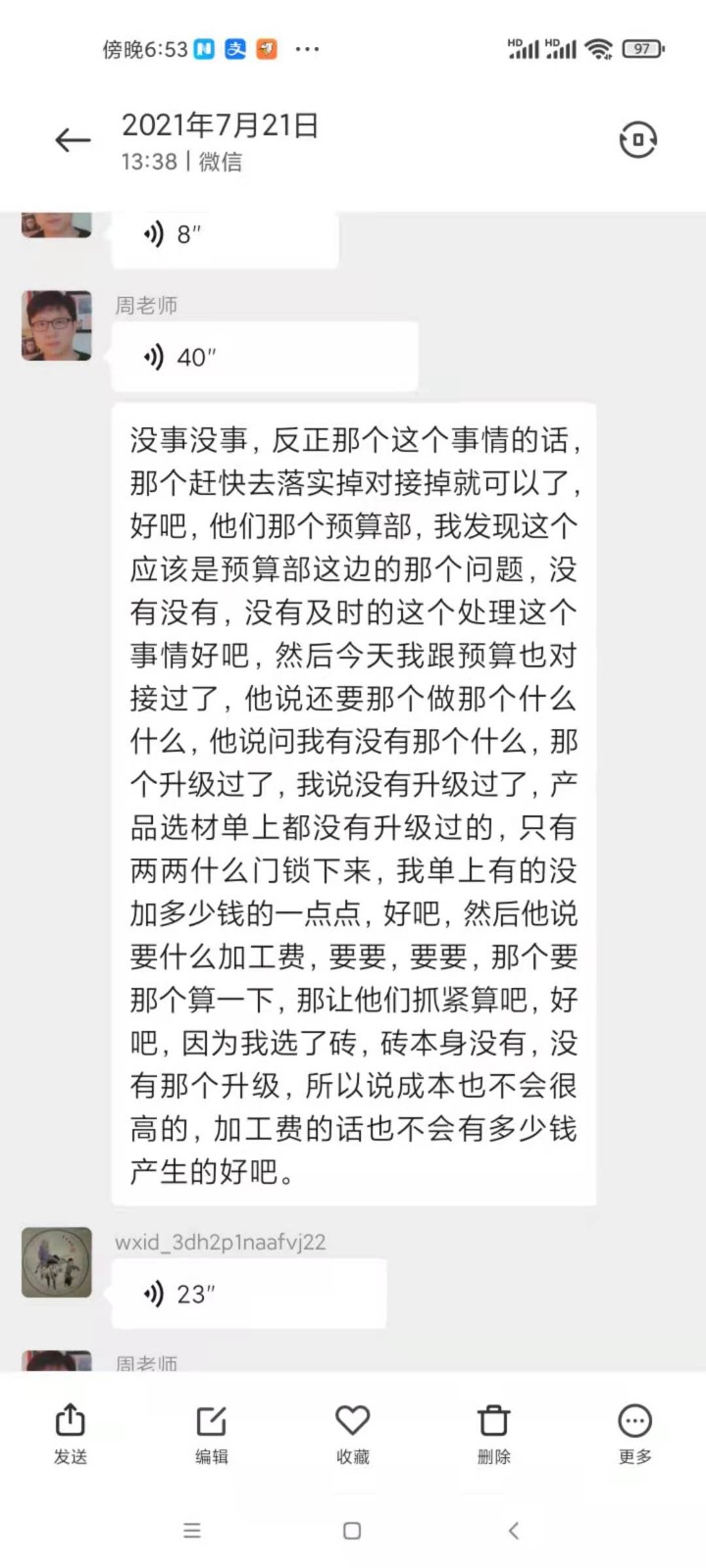 在2021年1月15陽臺墻磚這里開始存在爭議,自己就主動與公司和設計師協(xié)商,有截圖證明,公司和設計師沒給與回應,2月過年,3月初才知道設計師離職,公司甩手掌柜,說離職員工與公司不搭界,公司現(xiàn)身說法要把托墻磚的工期給扣掉,這不都是公司自己耽誤的時間,為什么讓客戶買單。