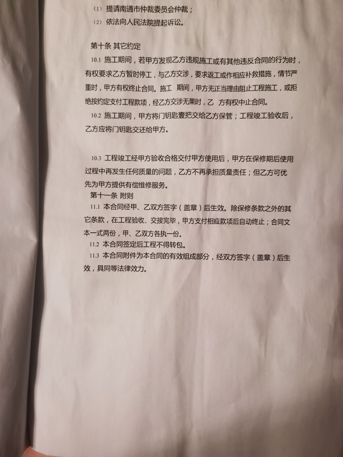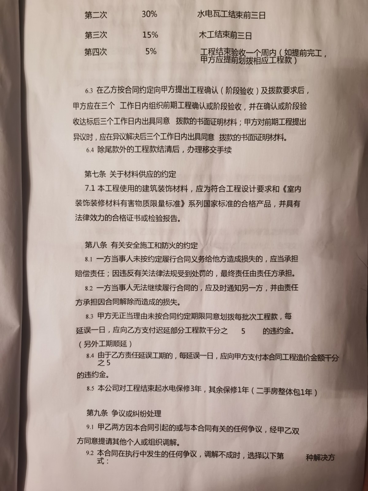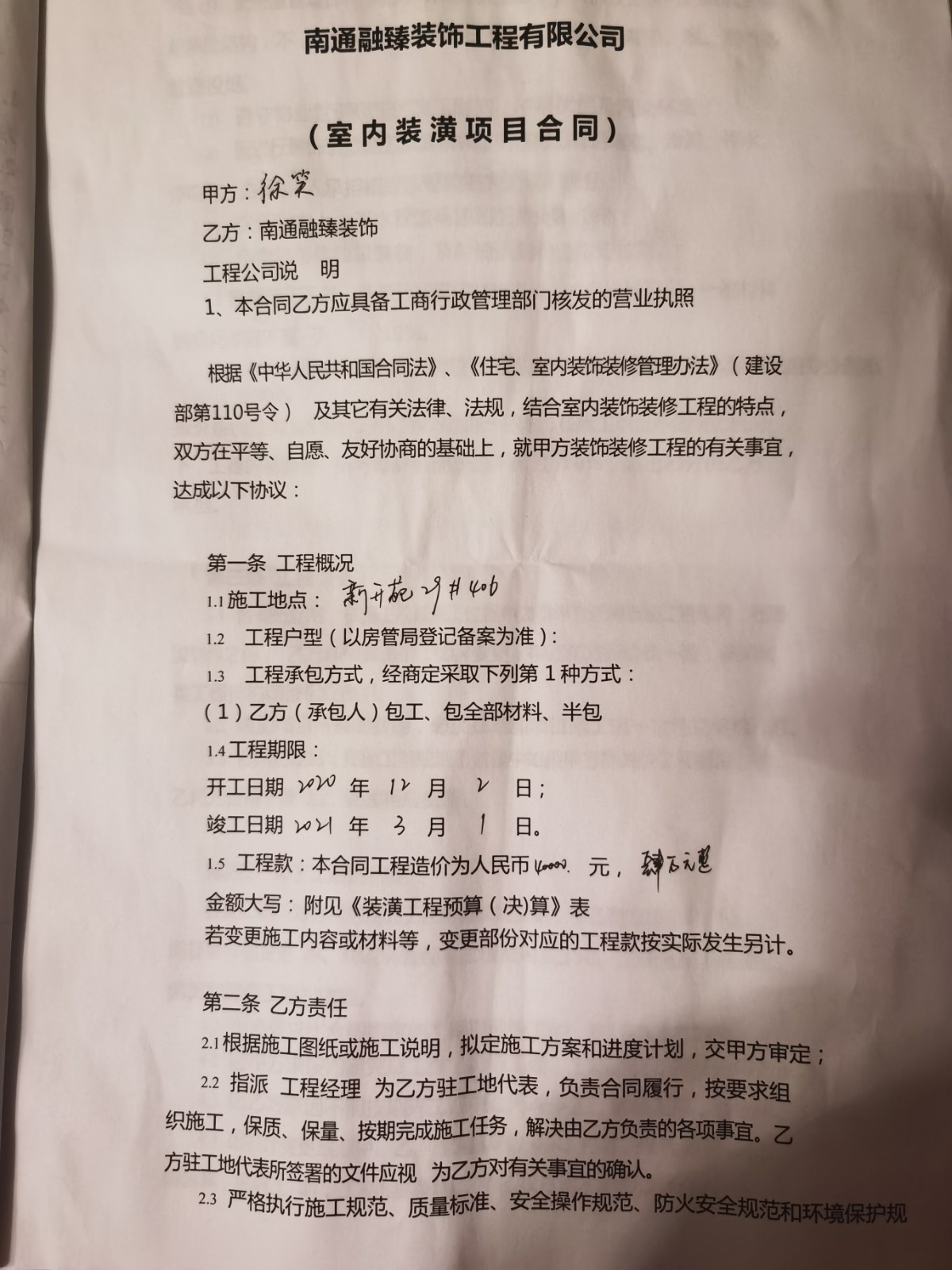 2020年11月29日簽訂裝修合同,合同書(shū)明2020年12月2日動(dòng)工,并于2021年3月1日竣工。期間,我甲方按進(jìn)度與乙方要求打款工程款,無(wú)拖欠?。ㄤ伒匕迩埃┕がF(xiàn)場(chǎng)保潔做衛(wèi)生,打掃費(fèi)500元,還是我甲方墊付)