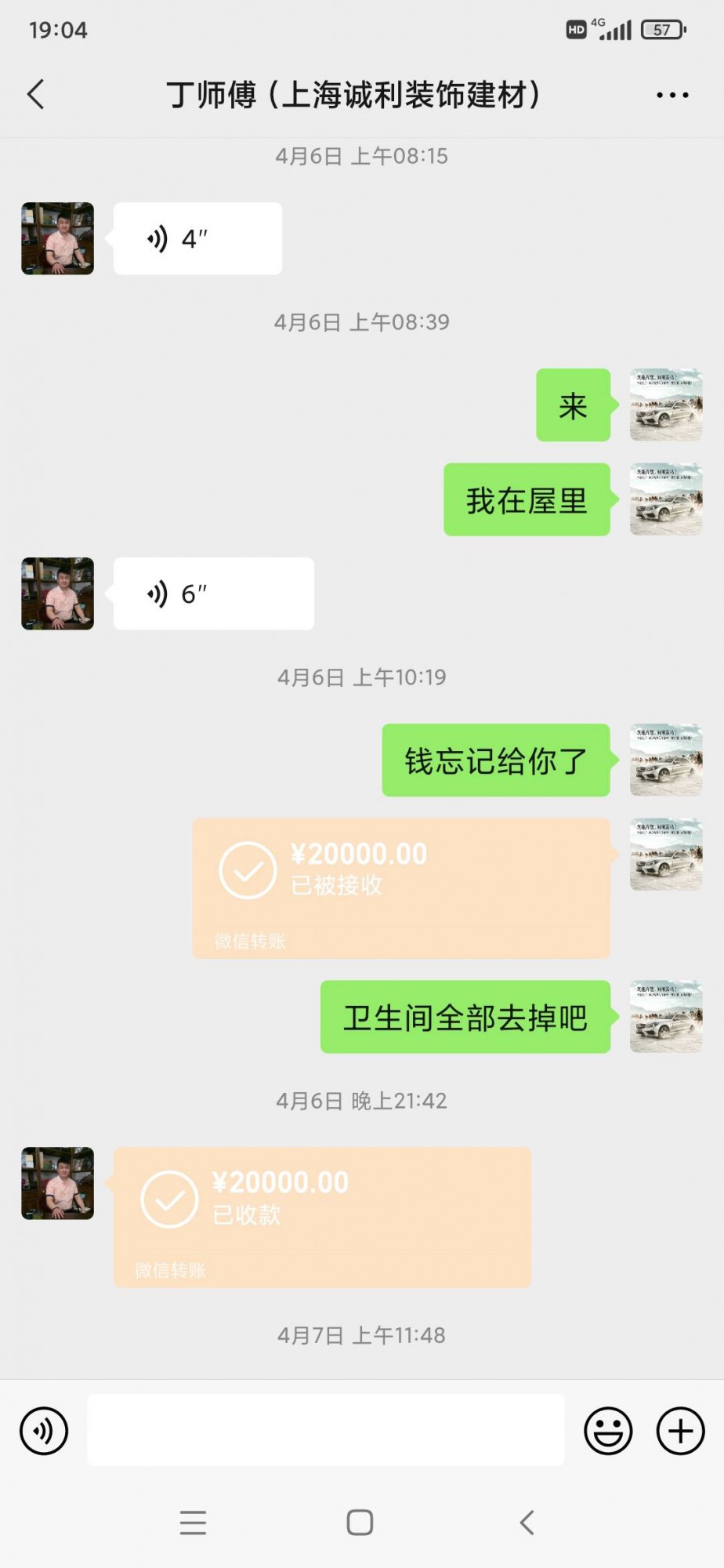 2021-4-6我付了20000 泥工階段時候,我發(fā)現(xiàn)陽臺也兩面墻沒敲,后面老板說這個要加錢1500,無奈我同意了,而且中途換裝修公司也麻煩。所以勉強接受。
