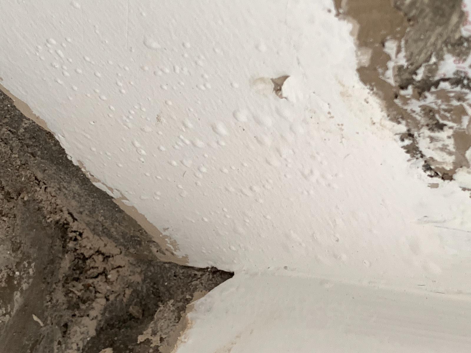 1)三個衛(wèi)生間、四個陽臺全部有滲水/漏水情況。入戶門外墻滲水到內(nèi)墻,浸泡吊頂石膏板。