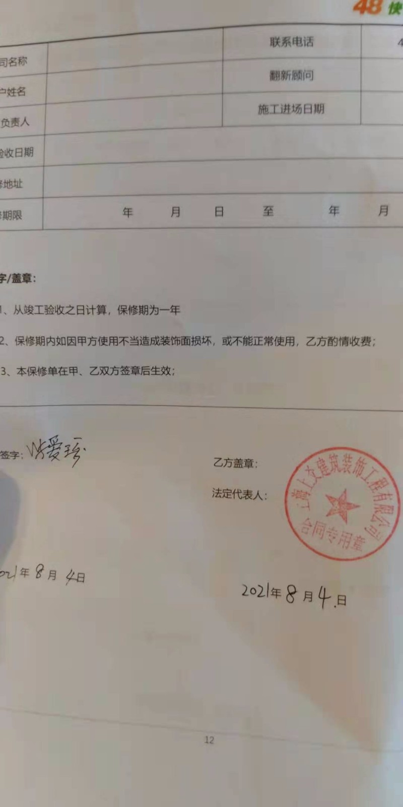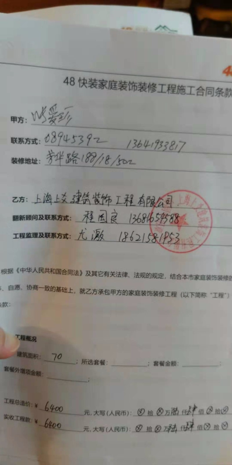 今天已和上海48快裝公司協(xié)調(diào)一致:裝修合同終止,同意退回一期預(yù)付款。