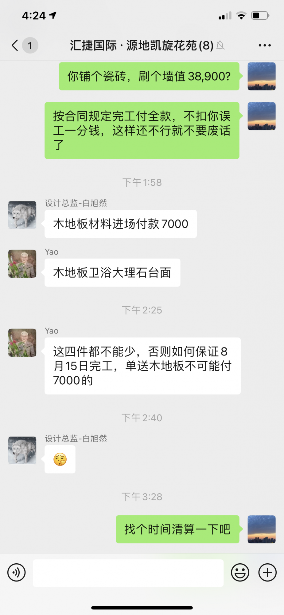 | 裝修面積 | 104m2 | 投訴人手機(jī) | 1391738**** | 被投訴人手機(jī) | 1569091**** |