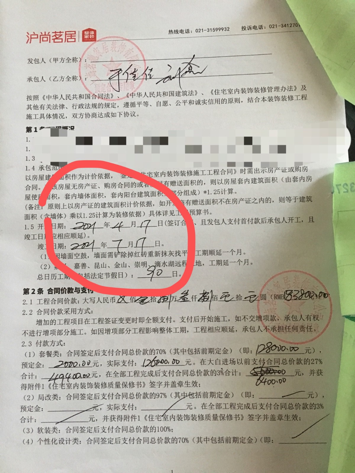4月17日正式開工,期間我們都按照合同按時(shí)付款,8月1日應(yīng)完工,到現(xiàn)在貼腳線、門套、三聯(lián)動(dòng)門、廚房定制柜至今未安裝,公司拖拉,店長(zhǎng)蠻橫,施工隊(duì)長(zhǎng)不聞不問,催辦多次都無果!他們還說“超期賠就賠,跟公司說”,完全不是解決問題的態(tài)度。