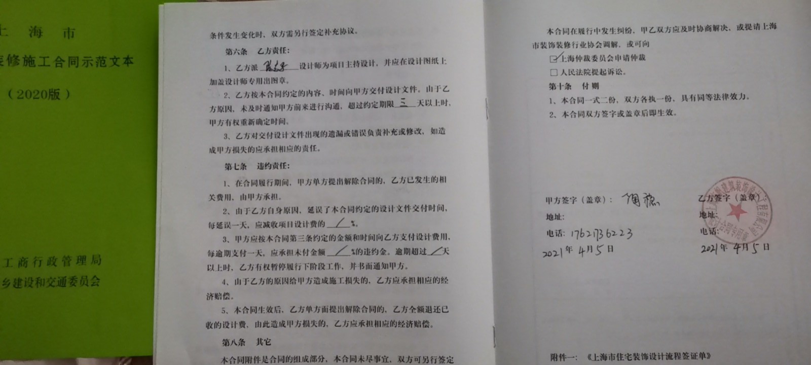2.設計師承諾的“施工現(xiàn)場4次節(jié)點交底、施工過程跟蹤服務、陪同選材、后期軟裝指導搭配”沒有做到相應的設計服務,以及“方案、施工圖、三維效果”沒有根據(jù)實際房屋做到相應的跟單及修改服務。實際方案和施工均是施工師傅現(xiàn)場自己弄的,與設計嚴重不符(設計師不根據(jù)實際需求和戶型尺寸來設計方案)。