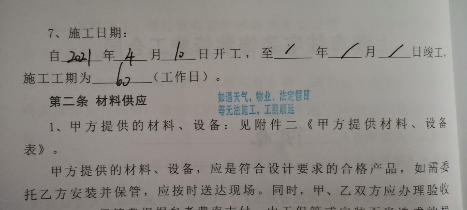 今年4月5日與亦帆簽訂裝修合同和設計合同,施工周期60個工作日(于4月10日開工,7月6日完工驗收)。1.迄今為止瓦工(瓷磚),木工(廚衛(wèi)吊頂),油漆工等施工仍然沒有完工。