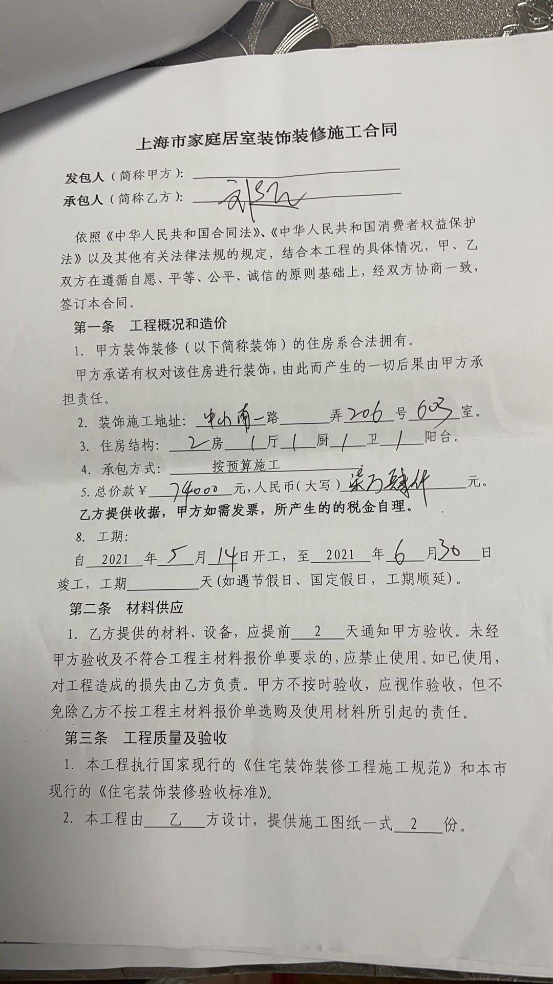 1、合同上標明6月30日竣工,至今未完成。仍有大量工程未做,門窗未裝,地板未鋪,廚房柜子未做,廚衛(wèi)吊頂均未做。