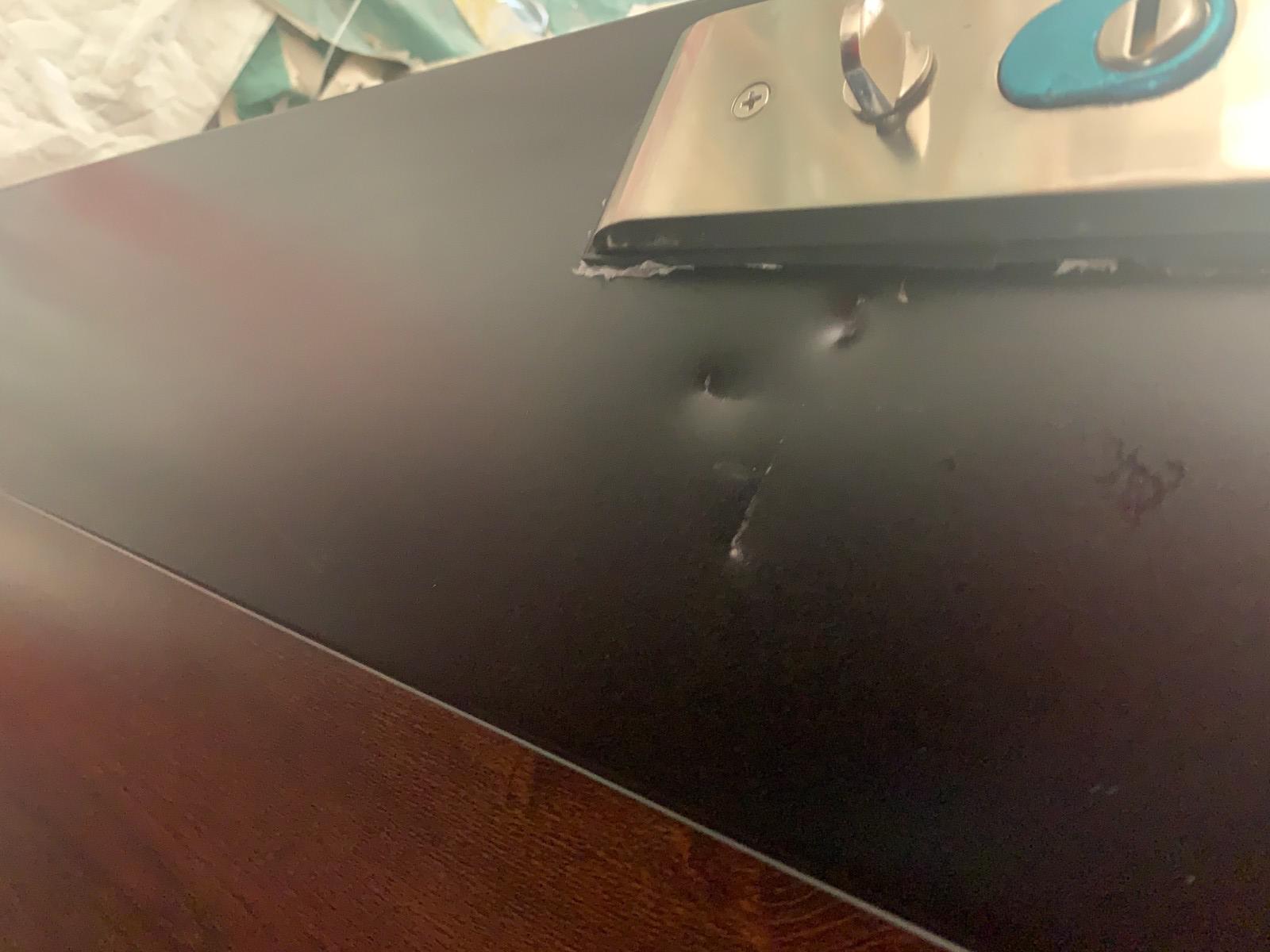 4.房子大門在裝修過程中被硬物撞擊,導(dǎo)致凹凸以及掉漆