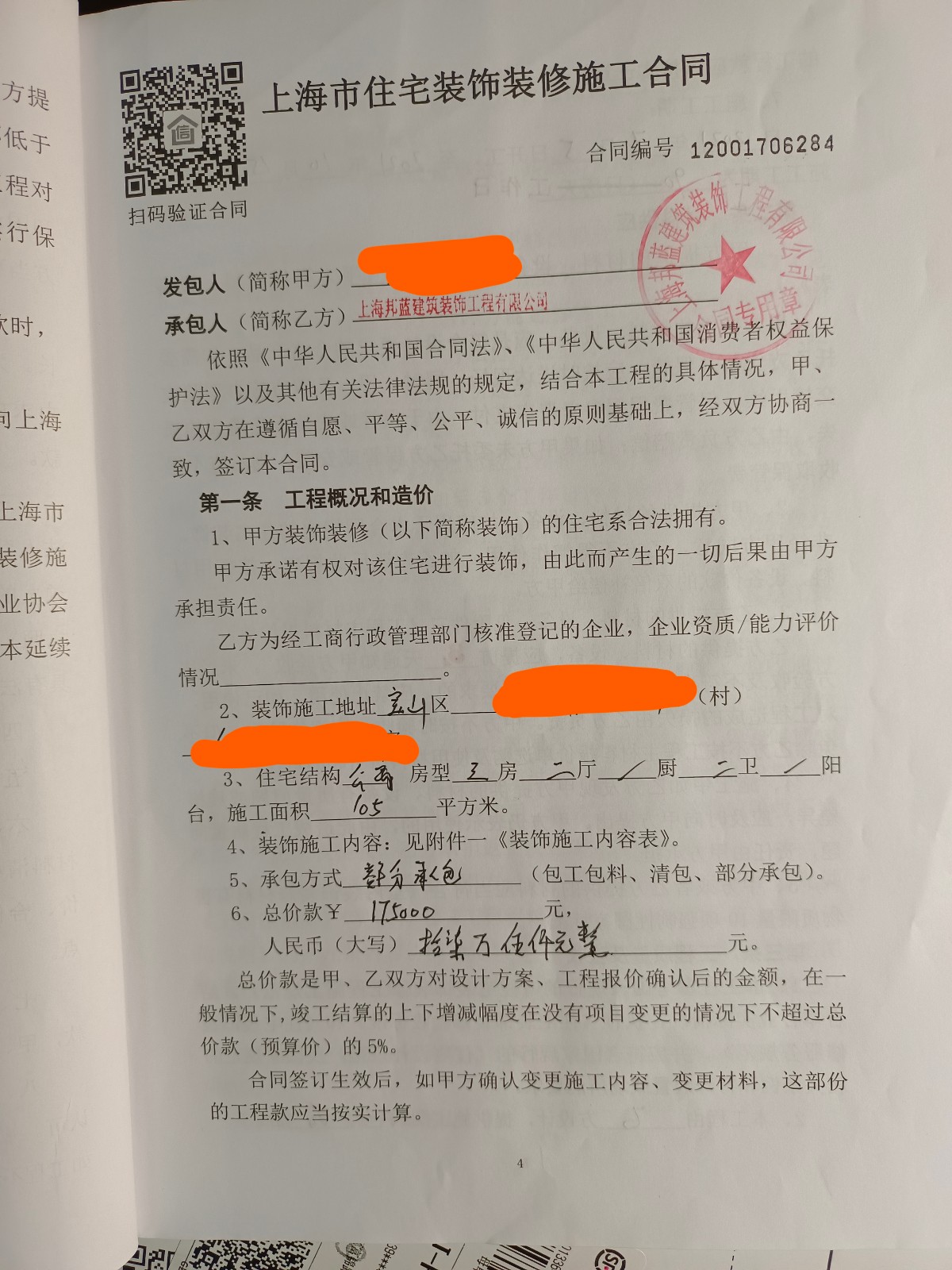 | 裝修面積 | 120m2 | 投訴人手機 | 1348222**** | 被投訴人手機 | 1512110**** |