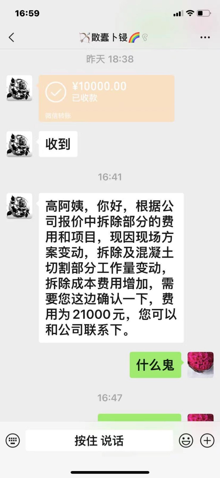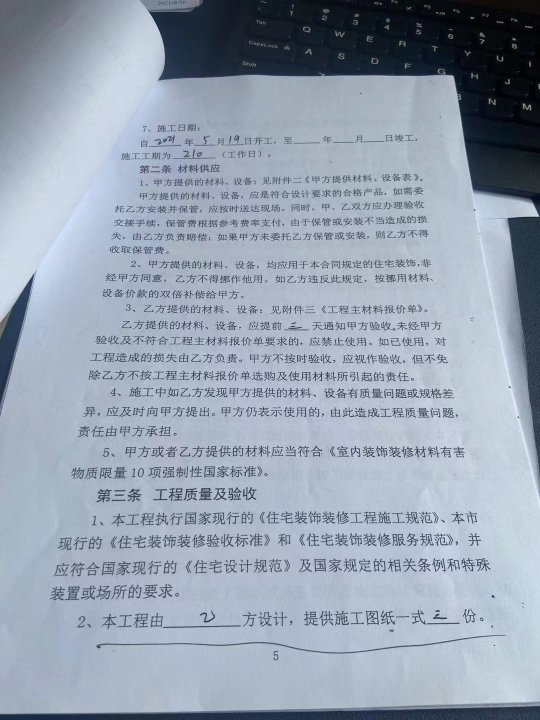 二、按合同約定,提供施工圖紙,開工三個月,至今無法提供施工圖,合同為閉口合同,在無施工圖、無名目下亂收費,不給錢就停工,三個多月過去了,毫無施工進展,敲墻還無完工