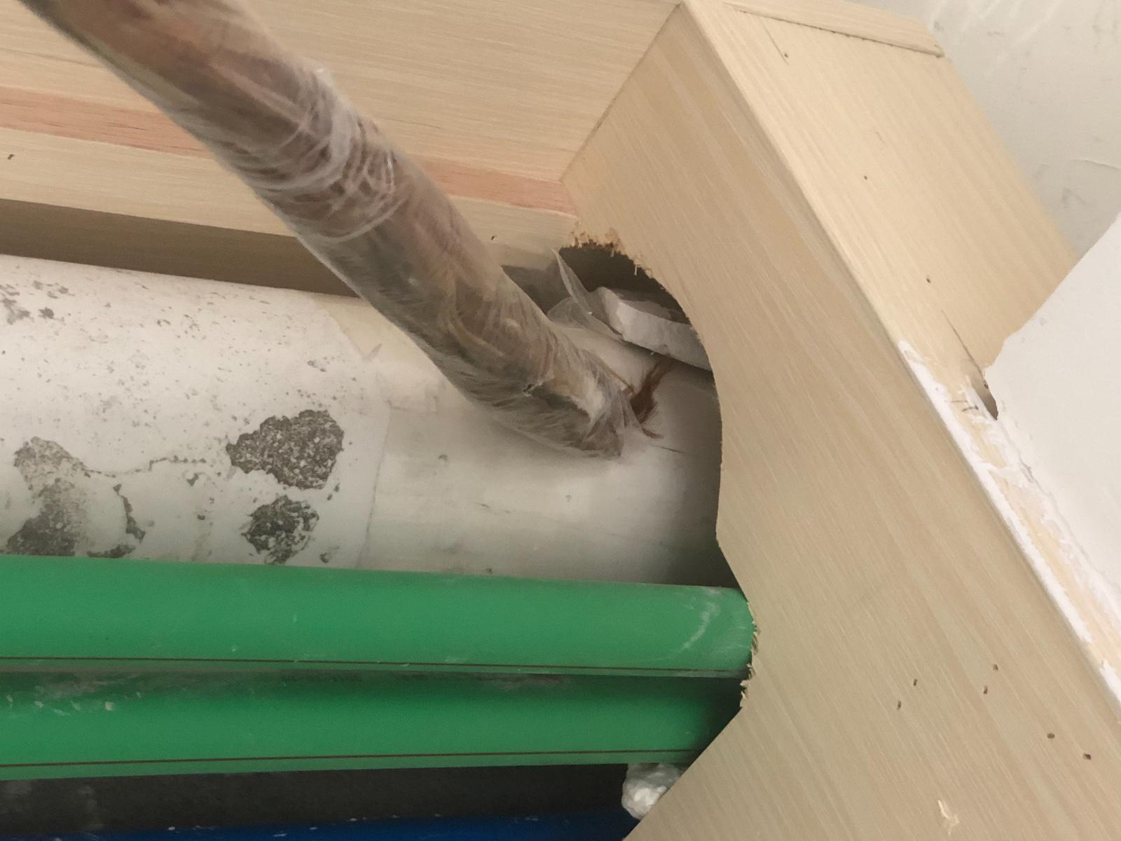 2、水電工鋪設(shè)線路多處出現(xiàn)漏鋪現(xiàn)象,而且不按照業(yè)主要求隨意安排開關(guān)位置。淋浴器處安裝三角閥不固定在上面處。業(yè)主發(fā)現(xiàn)后與其溝通,老板不僅沒有及時(shí)修正錯(cuò)誤而且故意拖延時(shí)間。
