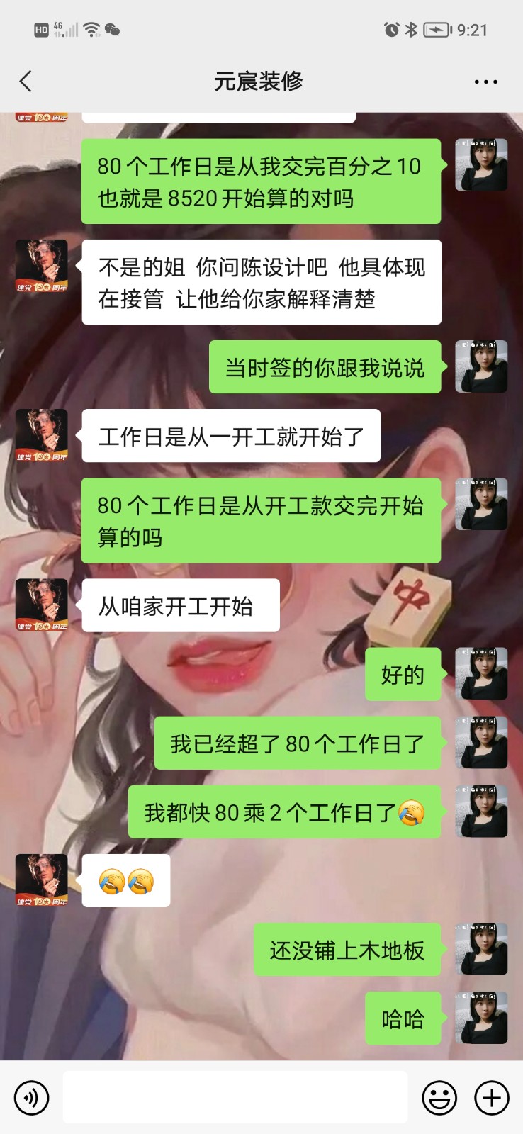 3裝修公司說好的80個工作日完工從2020年7月20日簽訂合同2020年12月5日開始動工現(xiàn)2020年8月31日未完工 完工之后補齊違約金